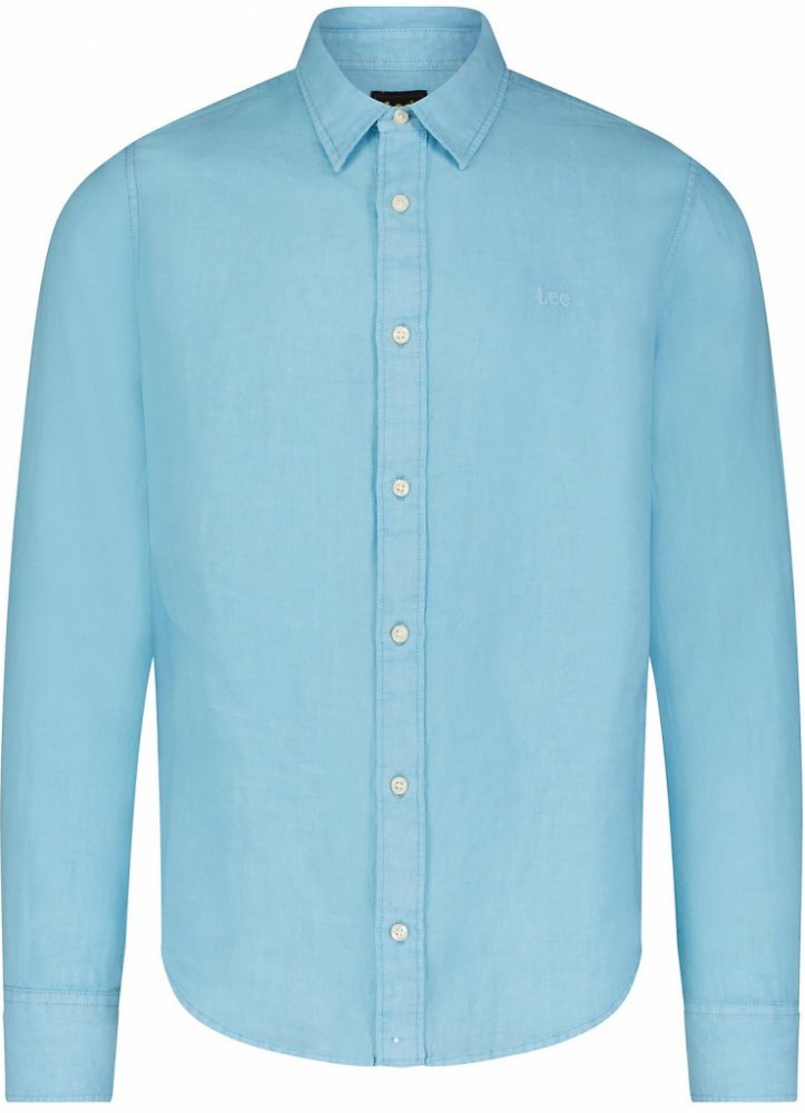 Lněná košile s dlouhým rukávem ve světle modré barvě od značky LEE. Má zapínání na knoflíky. Košile bez kapsičky. Ušita v mírně projmutém střihu Regular Fit. Vyrobena z 65 % lnu a 35 % bavlny.