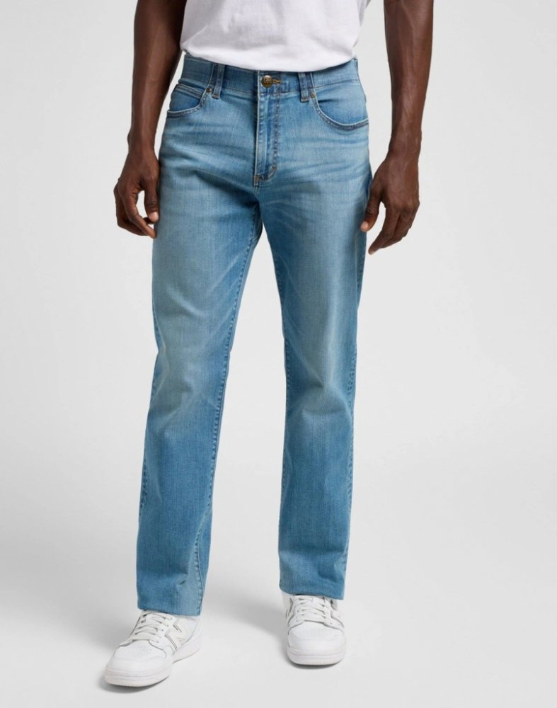 Klasické džíny se středně vysokým sedem a rovnými nohavicemi. Jsou vyrobeny ze světle modrého denimu o střední gramáži, lehce šoupané, prošité světle hnědou nití a mají mosazné nýty a knoflíky. Tento střih se od ostatních odlišuje pružnou gumou v pase, která ve spojení s příjemným materiálem znamená to nejvyšší pohodlí při nošení (Extreme Motion). Na zadních kapsách jeans je ozdobné originální the...