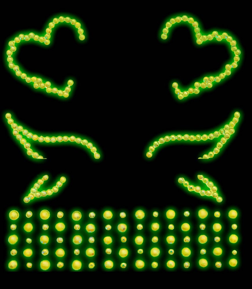 Přemýšlíte, jak vylepšit svůj festivalový, halloweenský, párty nebo prostě jakýkoliv vzhled? Vyzkoušejte tyto ozdoby na obličej, které úchvatně září ve tmě. Nosit je můžete všechny najednou nebo je postupně střídat v závislosti na vašem outfitu a náladě. Materiály jsou šetrné k pokožce, snadno se nanášejí a sundávají. Tak račte zářit!