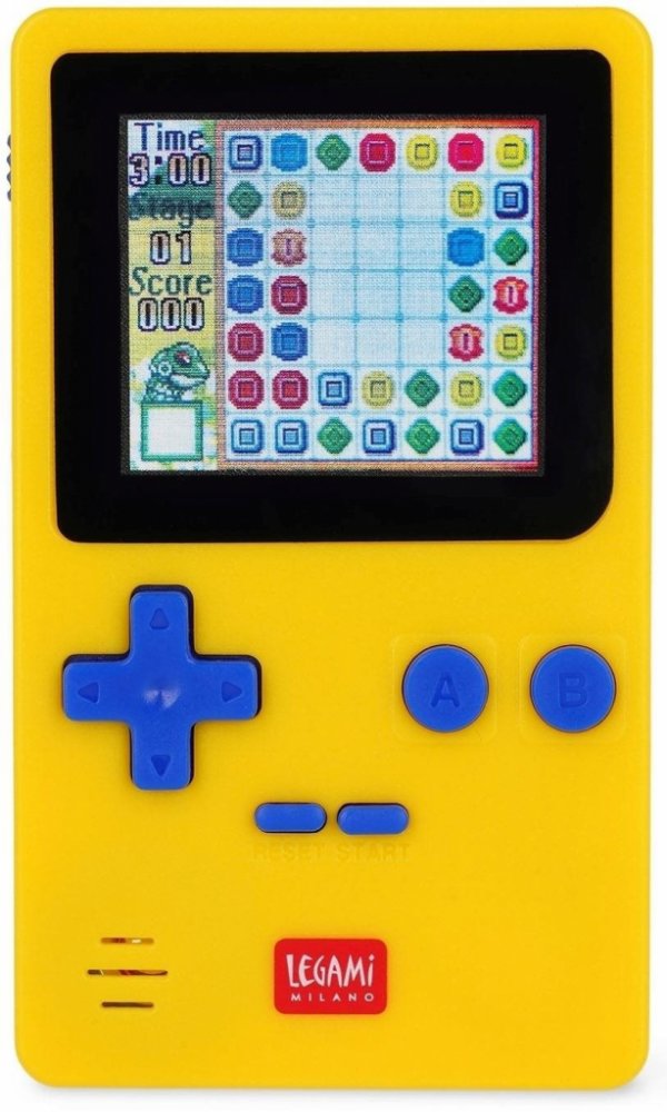 Mini přenosná konzole Super Arcade Station od Legami v kapesní velikosti s neodolatelným vintage stylem.