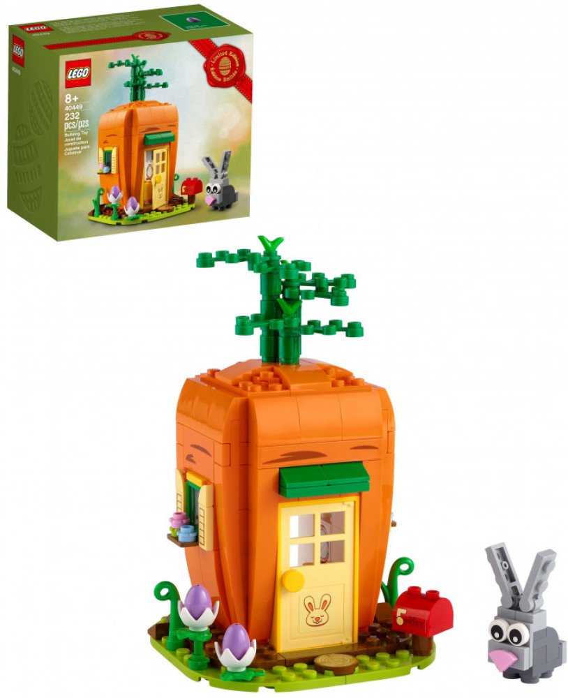 Pomozte malým dětem oslavit příchod jara s LEGO® stavebnicí Velikonoční zajíček a mrkvičkový domeček (40449). Nejprve si postaví zajíčka a jeho půvabný mrkvičkový domeček a poté se s kamarády vydají hledat vajíčka ukrytá na půdě. Sada obsahuje spoustu zábavných prvků, díky nimž mrkvičkový domeček zaujme hlavní místo na výstavce. Díky robustní podložce si jej lze snadno vystavit.