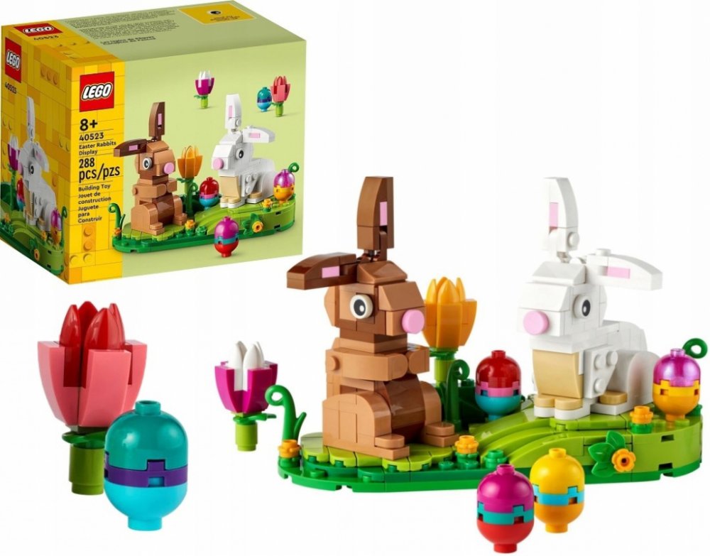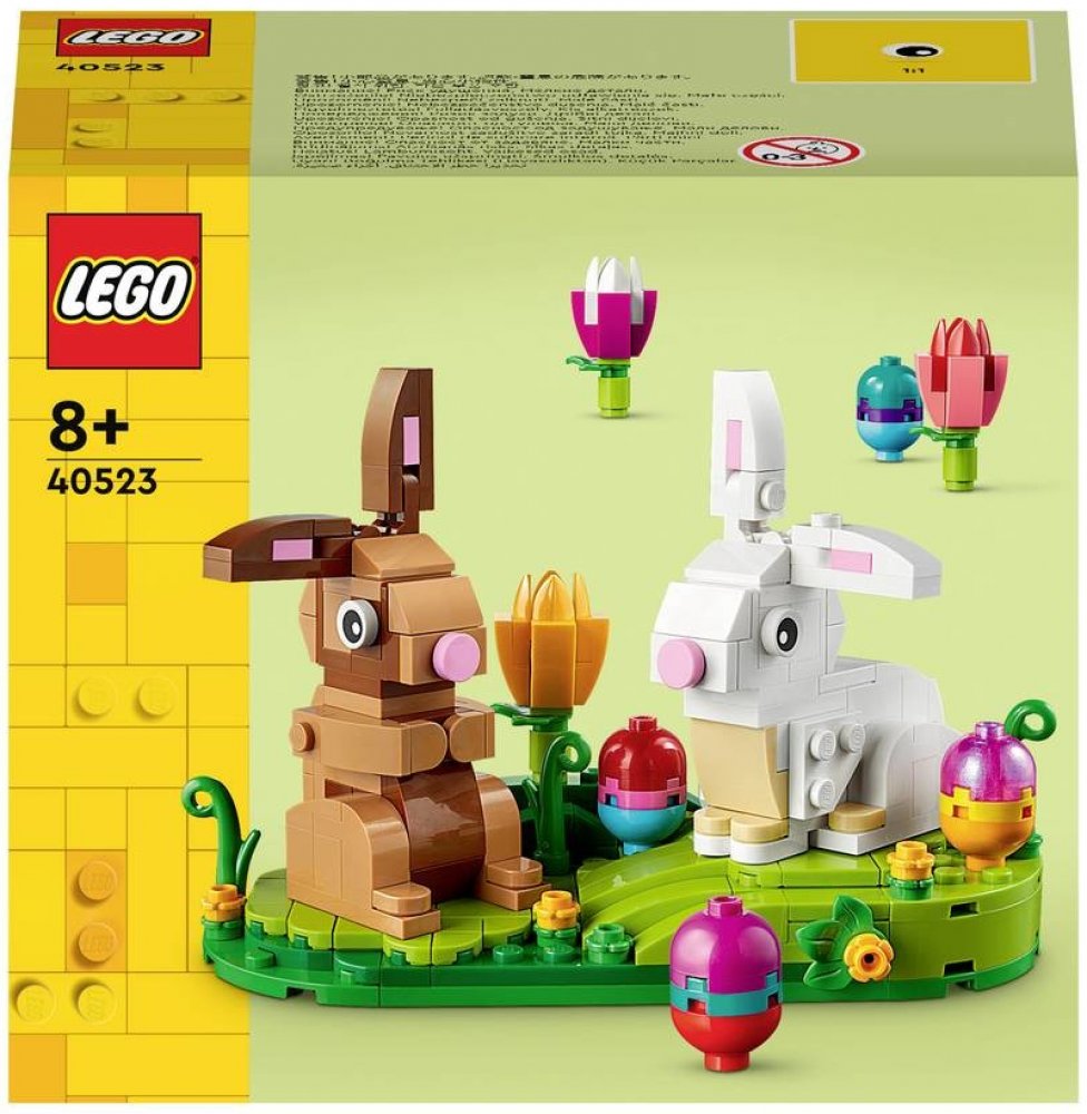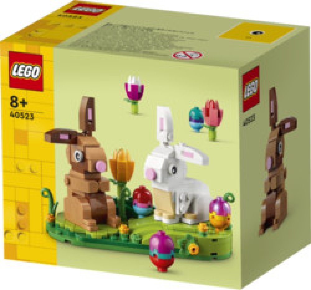 Stavebnice LEGO Velikonoční zajíček (40523) je skvělá velikonoční hračka pro děti na oslavu Velikonoc. Sada obsahuje bílého a světle hnědého zajíčka sedícího na jarní louce a je skvělým dárkem nebo pěknou dekorací. obrázek lze libovolně rozmístit a doplnit 5 barevnými velikonočními vajíčky a 3 tulipány. V jednom z vajíček je také nový průhledný prvek, který si fanoušci LEGO zamilují při výrobě vel...