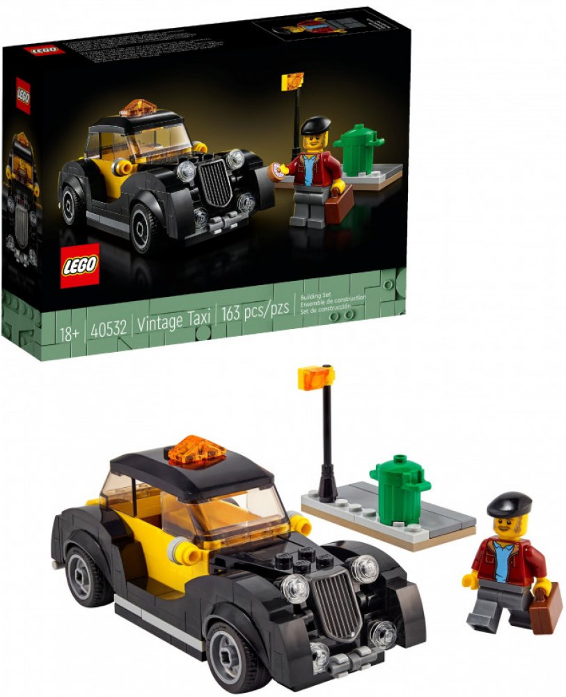 LEGO 40532 Retro taxi obsahuje kromě žlutočerného vozidla malý kousek pouliční scenérie, se skrytým exkrementem uvnitř zeleného odpadkového koše a jednu minifigurku. Sada je určena pro dospělé a obsahuje 163 dílků.
