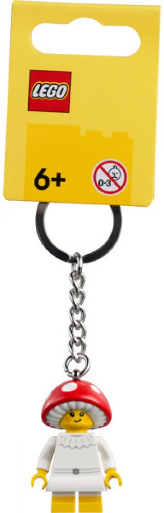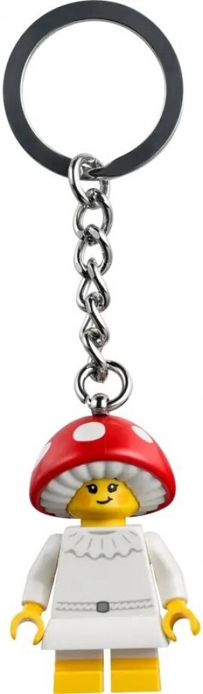 Přívěsek na klíče – Dívka v kostýmu houby – Součástí je minifigurka LEGO® Dívky v kostýmu houby (neodnímatelná) s odolným kovovým kroužkem a řetízkem