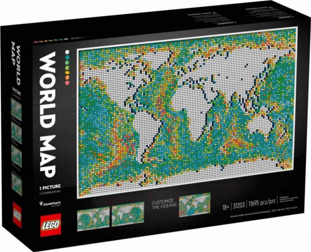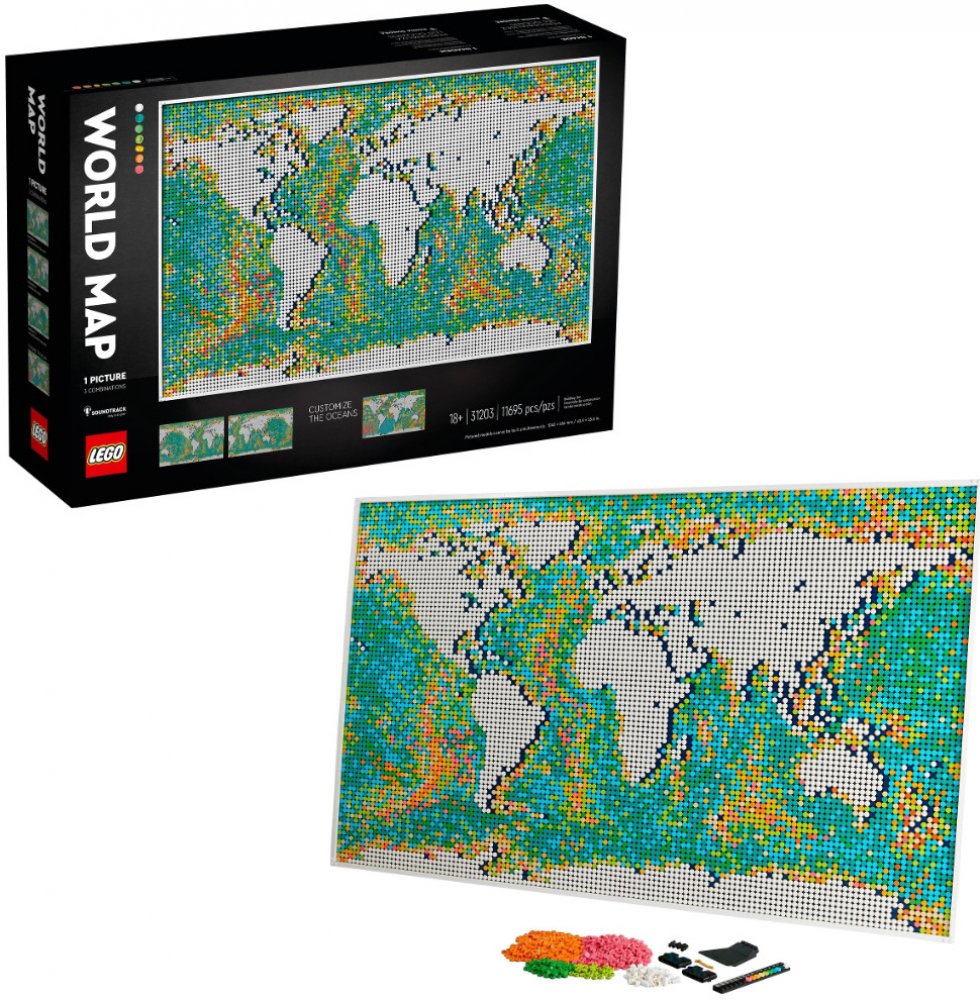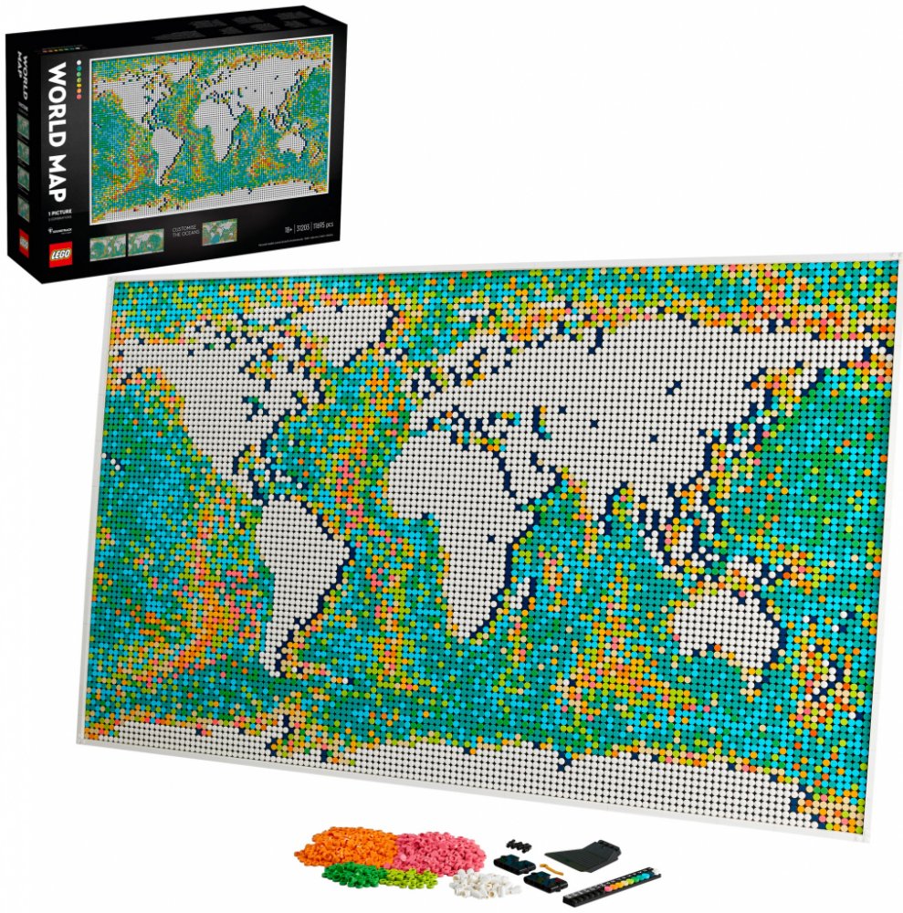 Postavte si svět po svém s touto úchvatnou stavebnicí LEGO® Art: Mapa světa (31203), která umožňuje vybrat si některou ze tří kombinací mapy světa a nabízí zcela otevřený a přizpůsobitelný zážitek.