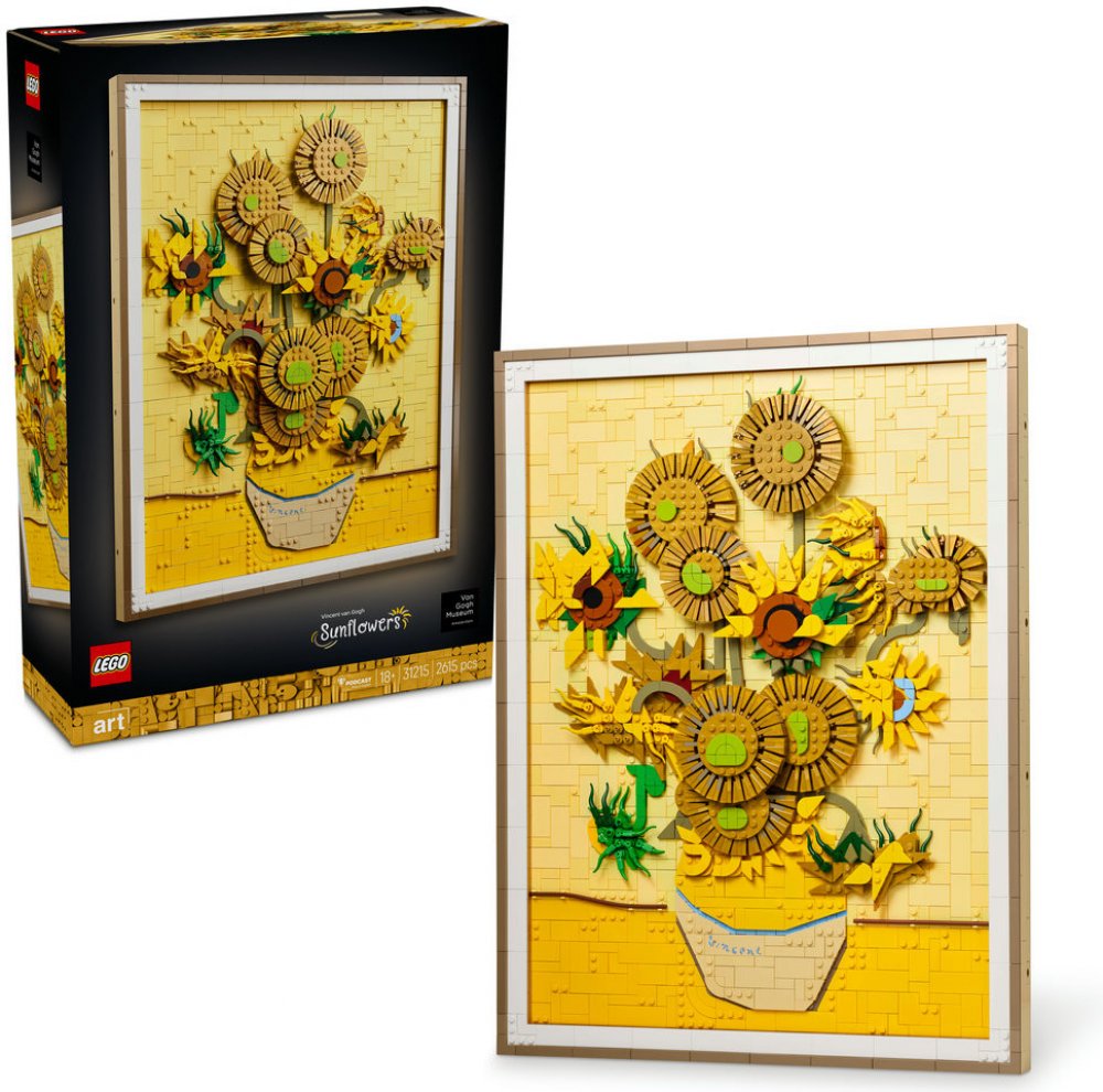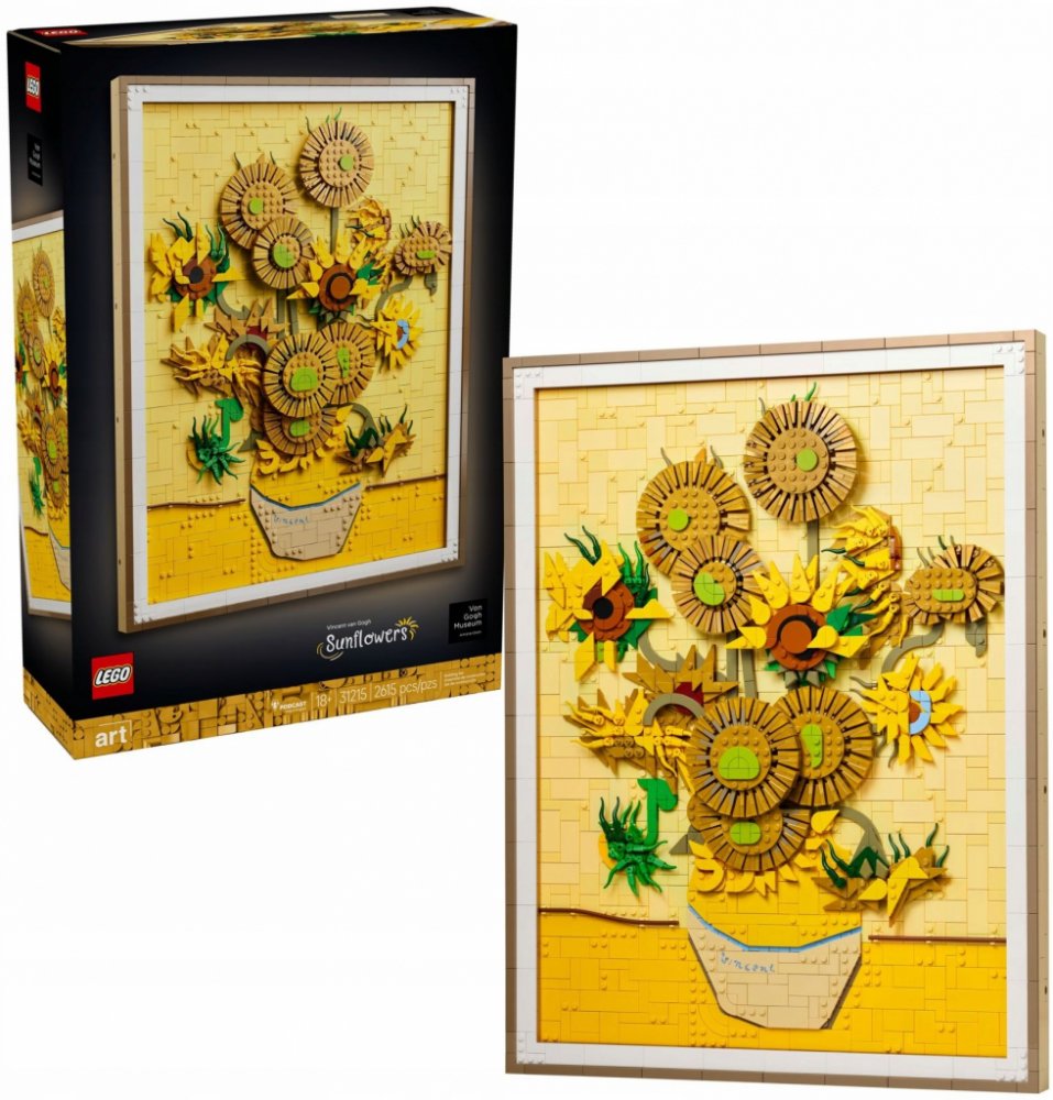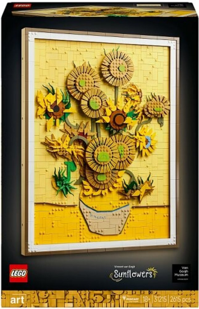 Ponořte se do van Goghovy geniality, tří odstínů žluté a slavným využitím světel a stínů. Toto umělecké dílo se skládá z 2615 dílků LEGO a obsahuje 16 slunečnic s nastavitelnými okvětními lístky, odnímatelný rám, dílek s van Goghovým podpisem a závěsný dílek pro zavěšení.