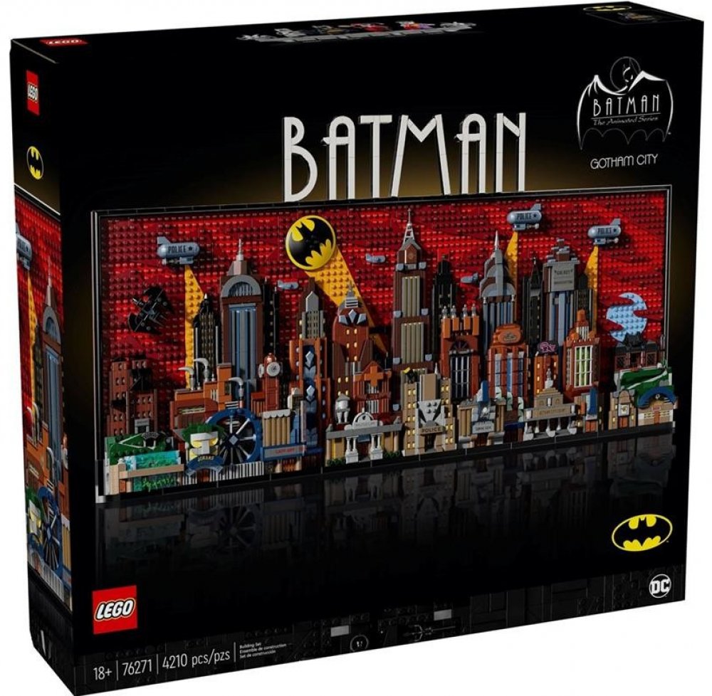 LEGO® stavebnice LEGO® Batman™ 76271 Batman: The Animated Series Gotham City™ představuje výjimečný výstavní model inspirovaný kultovním seriálem z 90. let. Celý model zachycuje město Gotham v charakteristickém stylu noirové animace, včetně ikonických budov jako Arkham Asylum, Wayne Tower, GCPD, ACE Chemicals nebo Gotham City Bank. LEGO® stavebnice má více než 4 000 dílků a je určena především dospělým fanouškům, kteří ocení precizní detaily, nasvícený efekt města a umělecké provedení celé stavby. Součástí je stojánek pro vystavení a sběratelská destička s logem animované série.
