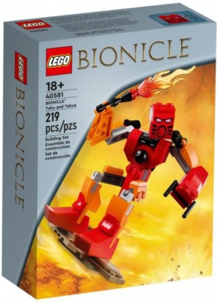 V roce 2001 představila společnost LEGO Group novou řadu, která se stala senzací: BIONICLE®. Příběh mocných hrdinů s živelnými silami uhranul celý svět a stál u zrodu komiksů, románů a filmů. Dvě nejoblíbenější postavy této řady se nyní vrací na scénu ve stavebnici BIONICLE – Tahu a Takua (40581) od LEGO® Icons. Kloubové akční figurky jsou vybaveny ohnivým mečem a vrhačem disků. Dále nechybí podstavec na vystavení v podobě lávy, abyste se mohli hrdiny BIONICLE pochlubit doma i v kanceláři. Seznamte se s hrdiny – Tahu a Takua jsou kloubové akční figurky ikonických hrdinů z řady LEGO® BIONICLE® vybavené ohnivým mečem a vrhačem disků Sledujte, jak surfují na lávě – Součástí stavebnice je podstavec na vystavení v podobě lávy, aby dvojice mohla surfovat na řekách z roztavené lávy tekoucí ze sopky Mangai Rozměry – Tento produkt měří přes 13 cm na výšku a 6 cm na šířku