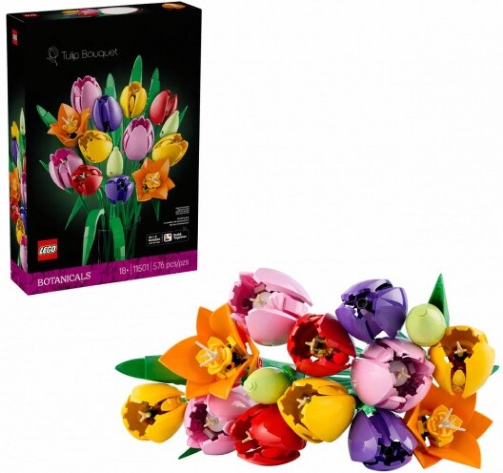 Zkrášlete svůj domov nádhernou květinovou dekorací s LEGO® Botanicals Tulipánovou kyticí (11501) určenou pro dospělé! Tato LEGO kytice oslavující jarní radost a optimismus obsahuje 5 typů tulipánů v různých barvách a stadiích kvetení. Užijte si krásu květin, zatímco tvoříte svěží zelené pupeny, fialové zavřené tulipány a červené, žluté a růžové roz...