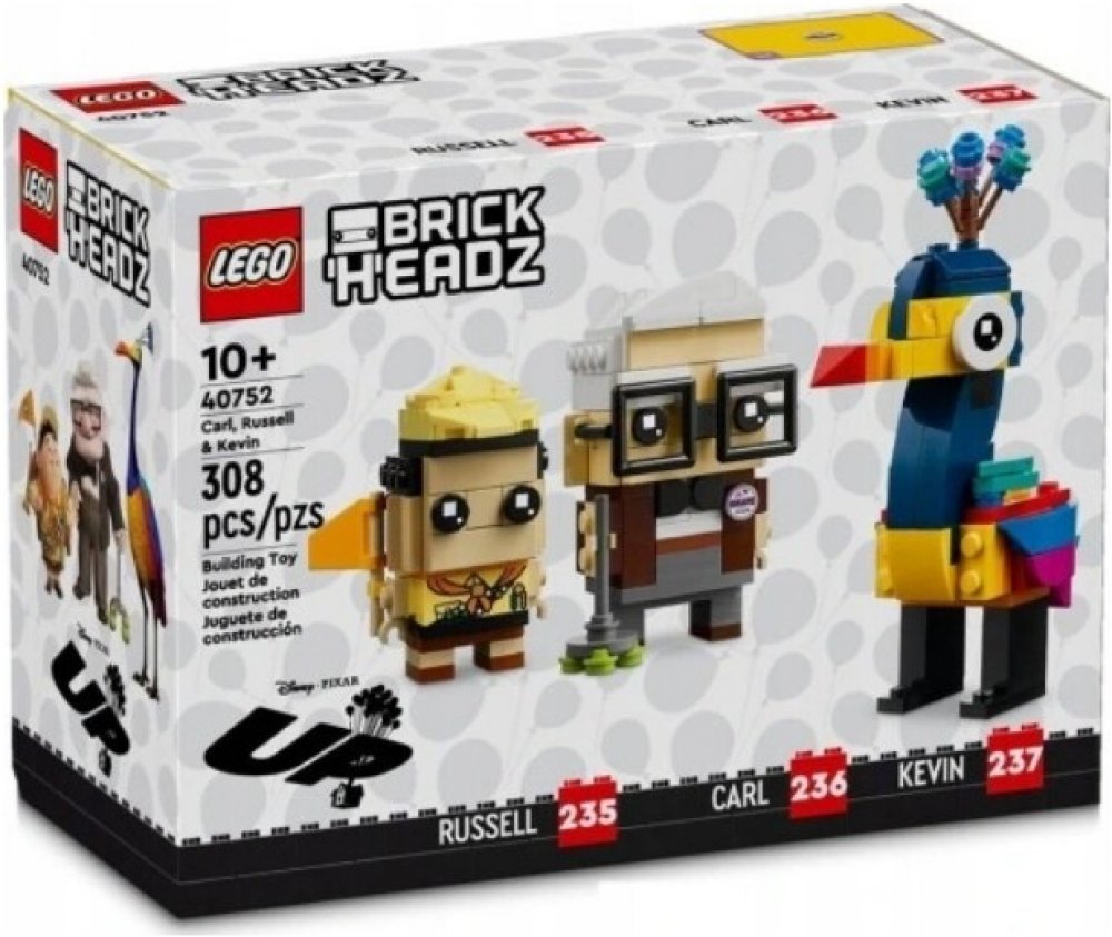 - Stavebnice na motivy filmu Vzhůru do oblak – Se stavebnicí LEGO® BrickHeadz™ ? Disney a Pixar Carl, Russell a Kevin si filmoví fanoušci od 10 let postaví oblíbené postavičky z filmu Vzhůru do oblak ve stylu BrickHeadz