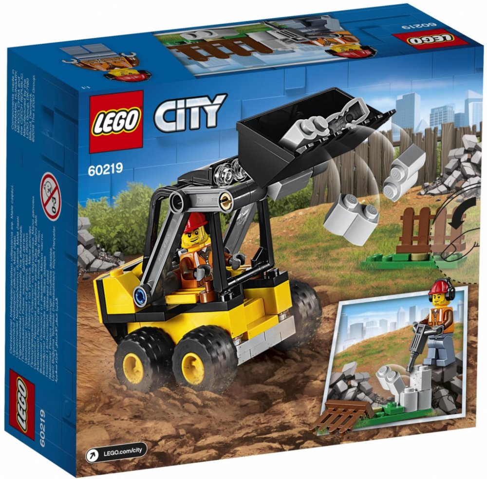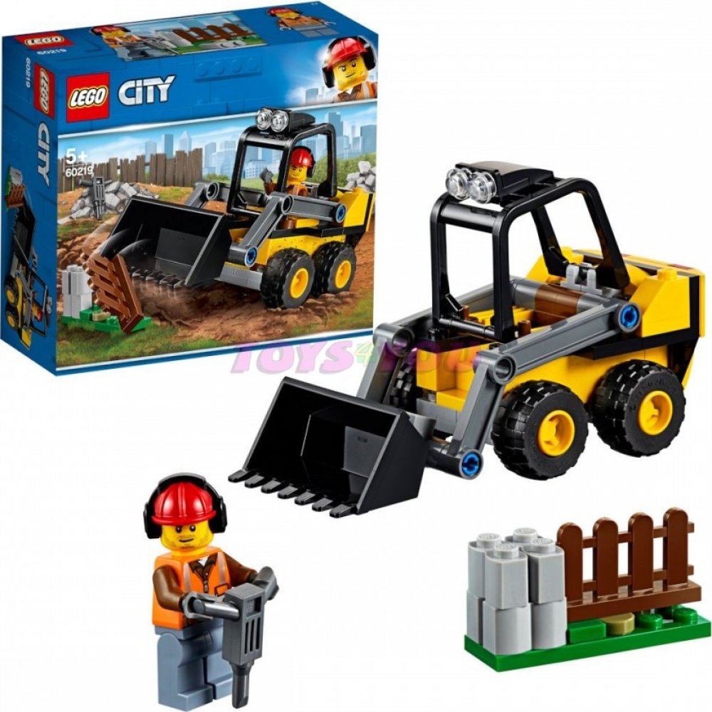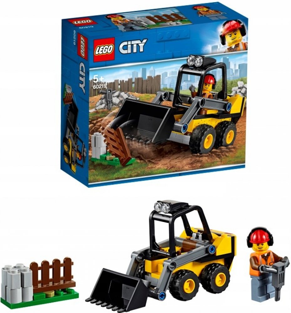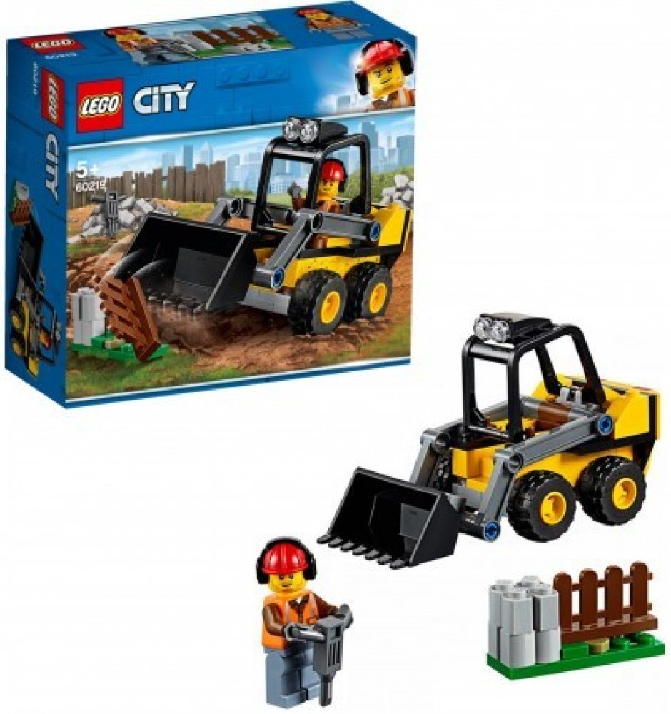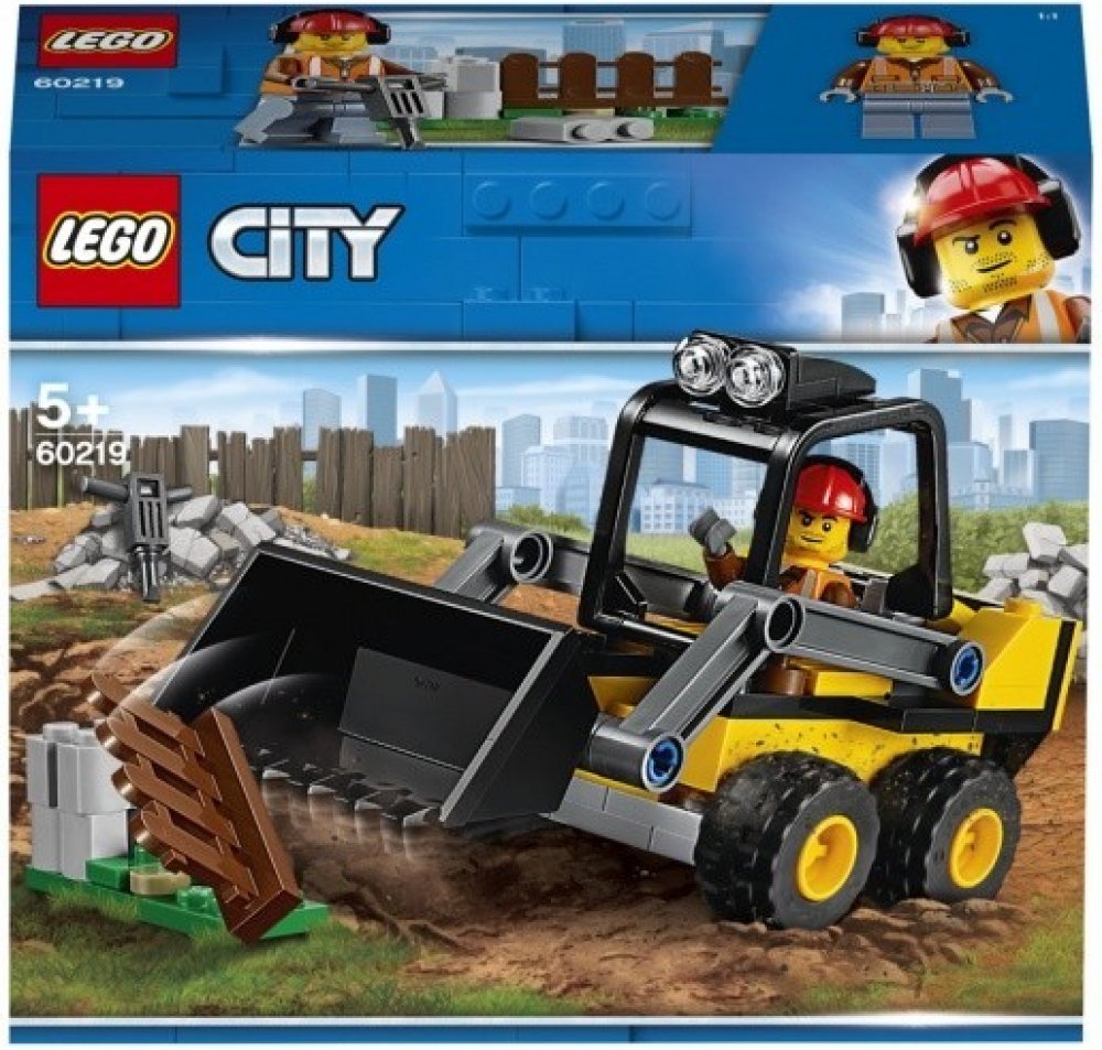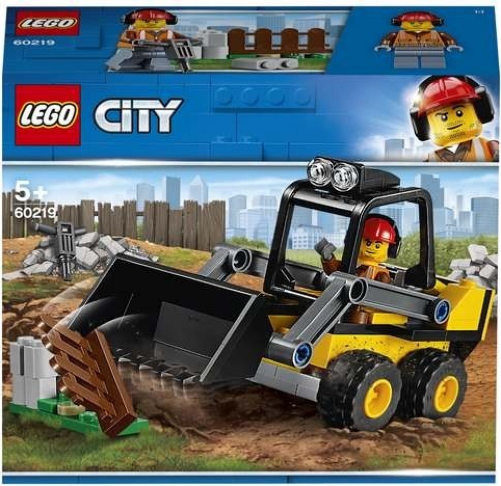 Pomáhej stavět ulice LEGO® City s masivním strojem ze sady 60219 Stavební nakladač! Tato klasická stavebnice obsahuje nakladač se zdvihacím předním ramenem, výklopnou lopatou a ochrannou klecí, a navíc malý plot, sbíječku, sestavitelnou hromadu betonu a minifigurku.