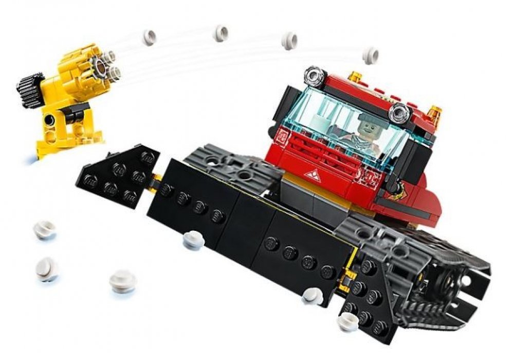 Sněžná rolba má kabinu pro minifigurku, otáčecí vystřelovací sněžné dělo pro šest dílků sněhu, robustní pásy a velký pluh v přední části pro shrnování sněhu. Stačí jen otočit knoflík na sněžném dělu a hned bude vystřelovat sníh.
