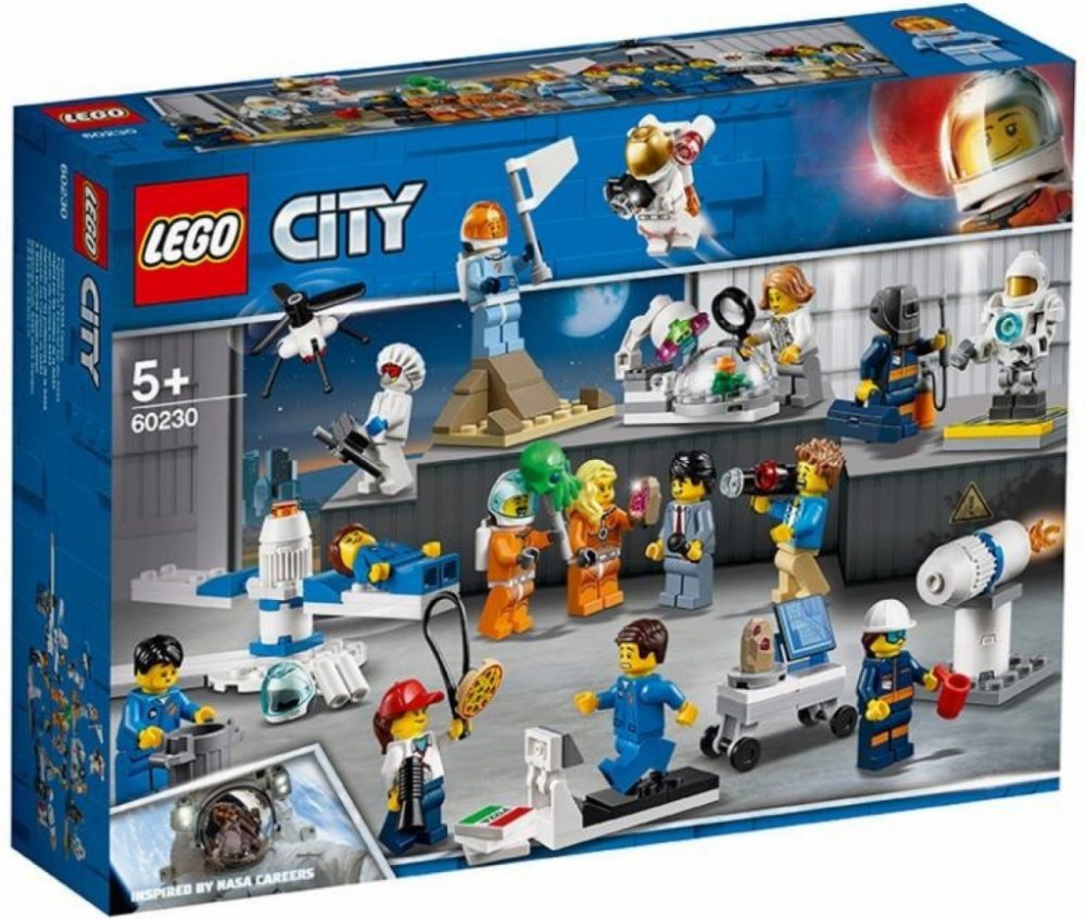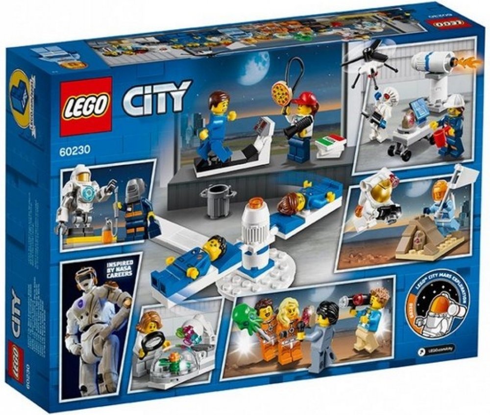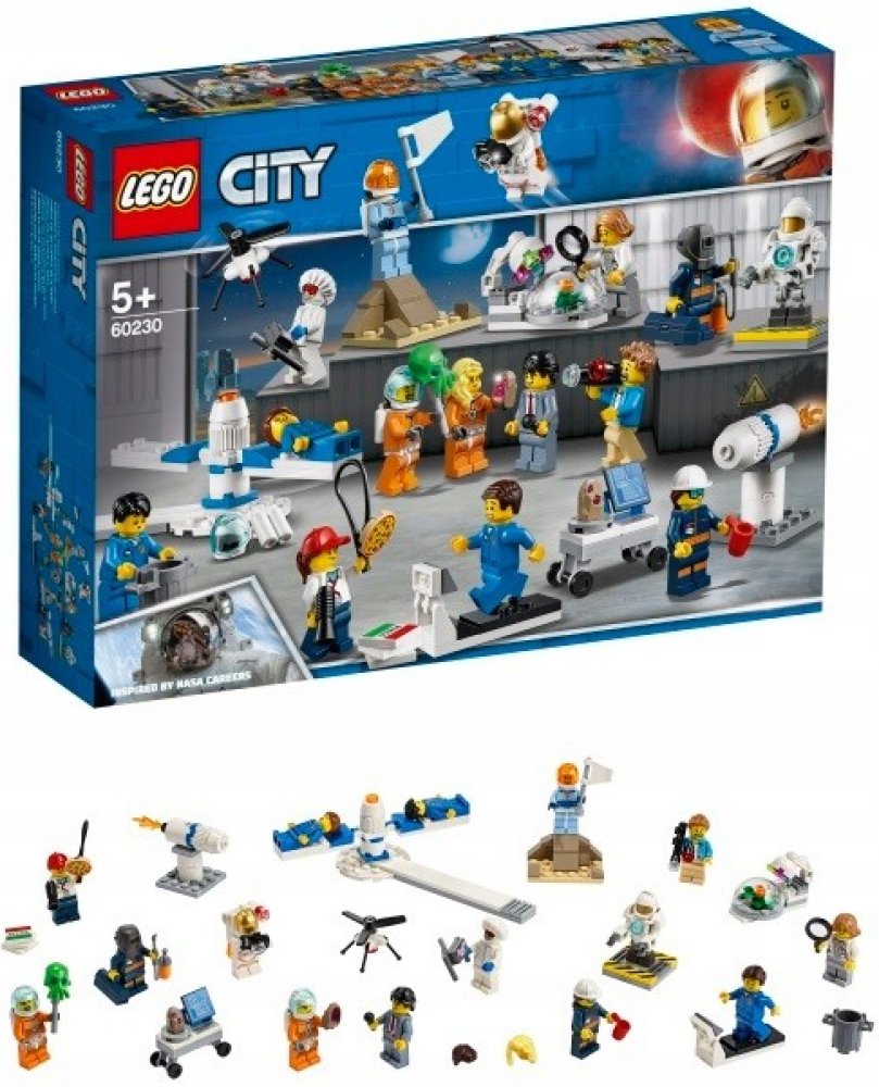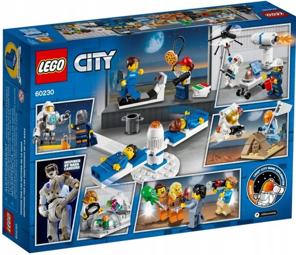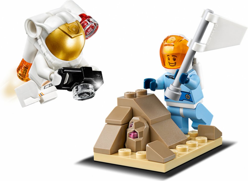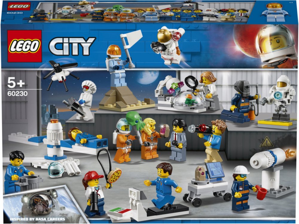 - Součástí je 14 LEGO® City minifigurek: 7 astronautů, reportér, kameraman, osobní trenér, dronový inženýr, raketový inženýr, strojní inženýr, botanička a robot.