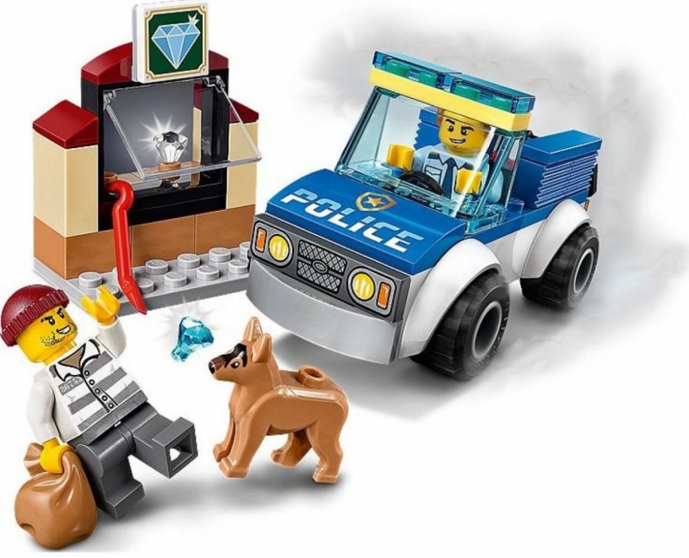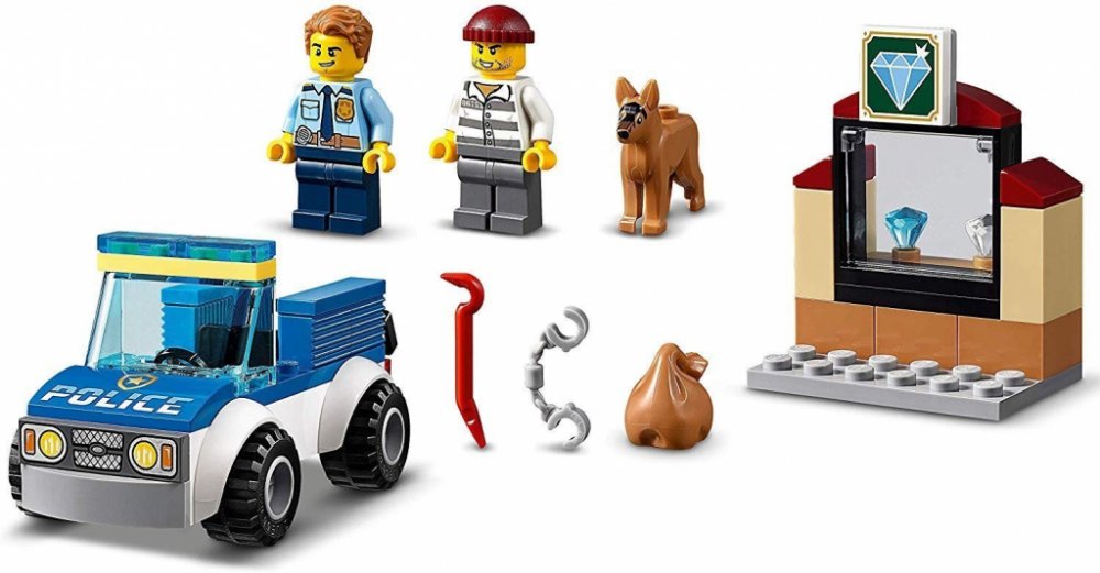 LEGO® City 4 let 67 ks policie City pro kluky a holky LEGO® 2020 Do 1 hodiny Běžné hraní 1 model 9 × 5 × 5 cm Policista, zloděj, policejní pes modrá, bílá, hnědá 2 ks