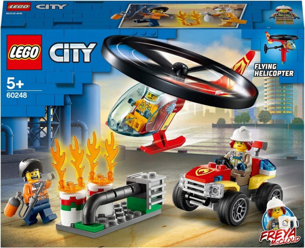 Tato sada LEGO® City Zásah hasičského vrtulníku (60248) – úžasná stavebnice pro děti, které milují akční hračky – obsahuje natahovací vrtulník, který skutečně létá, a k tomu navíc záchrannou čtyřkolku a scénu s požárem. Podrobný popis:Tato sada LEGO® City Zásah hasičského vrtulníku (60248) – úžasná stavebnice pro děti, které milují akční hračky – obsahuje natahovací vrtulník, který skutečně létá, a k tomu navíc záchrannou čtyřkolku a scénu s požárem. Děti si mohou užít zábavu se 3 minifigurkami, včetně dělníka s parádní svařovací maskou, hasiče-pilota vrtulníku a velitelky hasičů z televizního seriálu LEGO City Freyi McCloud. Parádní stavebnice pro děti Pokud hledáte ideální vánoční, narozeninový nebo jakýkoli jiný dárek pro děti, které milují akční hračky, již nemusíte hledat dál. Díky srozumitelnému návodu na stavění si i začínající LEGO stavitelé mohou vychutnat pohlcující stavitelský a herní zážitek z nezávislého hraní, zábavné postavy a vzlétnout s natahovacím policejním vrtulníkem, který představuje novinku pro leden 2020! Hasičské sady od LEGO City Hasičské sady od LEGO City nabízejí širokou řadu budov, realistických vozidel a zábavných postav se spoustou funkcí, které děti přenesou do světa, kde se daří kreativitě a představivosti.