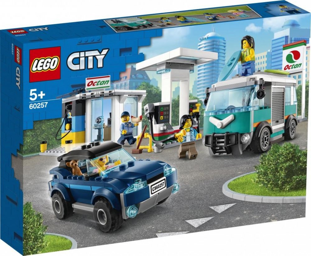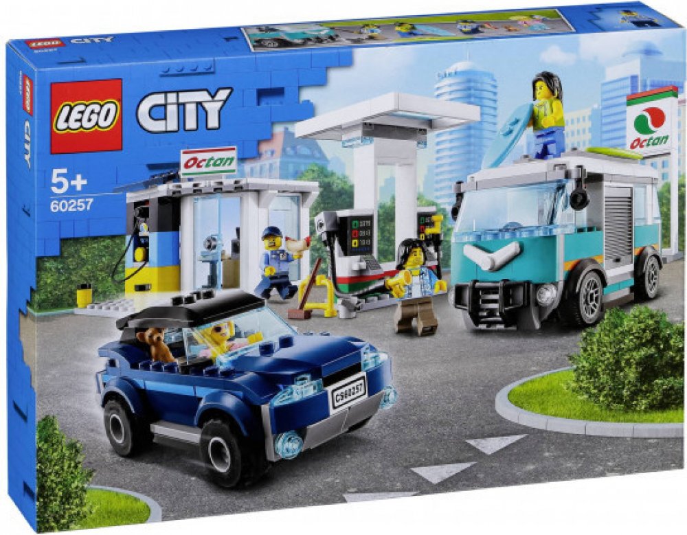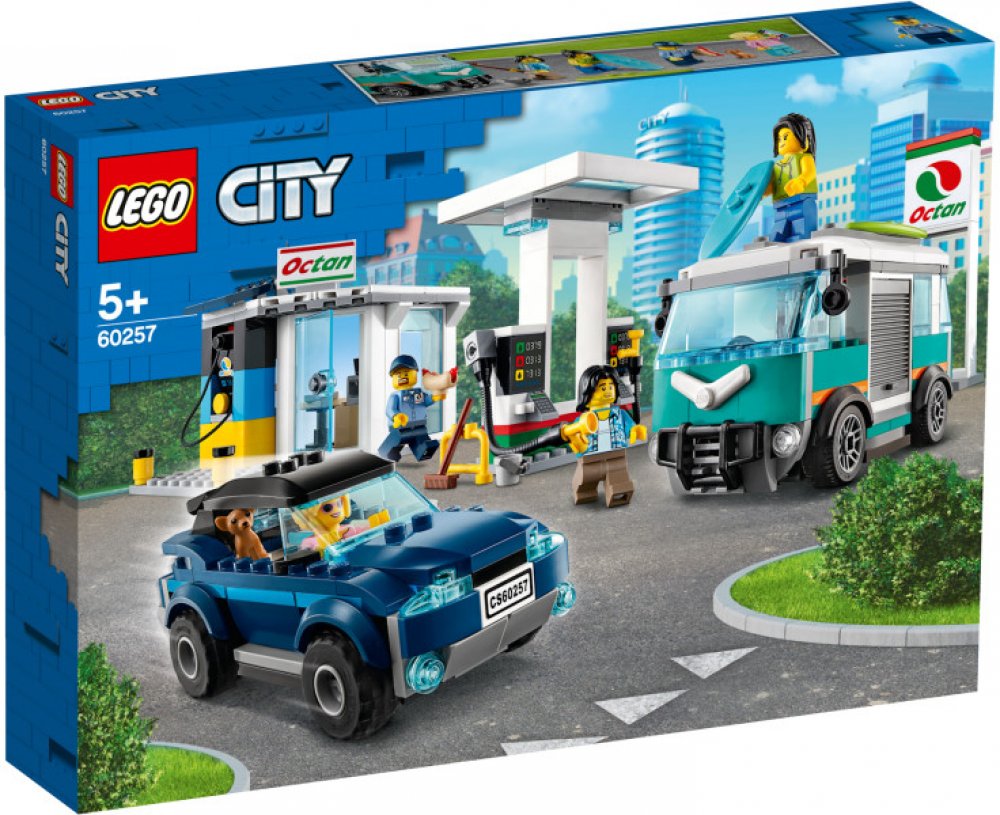 - Jedná se o skvělou stavebnici pro děti, které si rády hrají. Tato vícemodelová LEGO® City (60257) sada obsahuje model benzinové stanice pro vozidla na elektrický pohon a na benzín, a k tomu navíc zábavné postavy a psa čivavu.