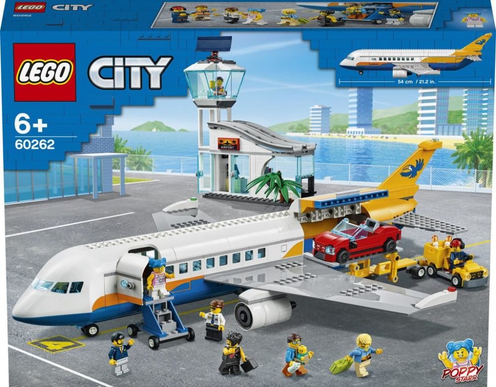 - Ve stavebnici vás čeká velký model letadla s místem pro pilota a cestující, včetně PoppyStarr z televizního seriálu LEGO® City Adventures, a navíc budova terminálu s dopravníkem na zavazadla a řídicí věží.