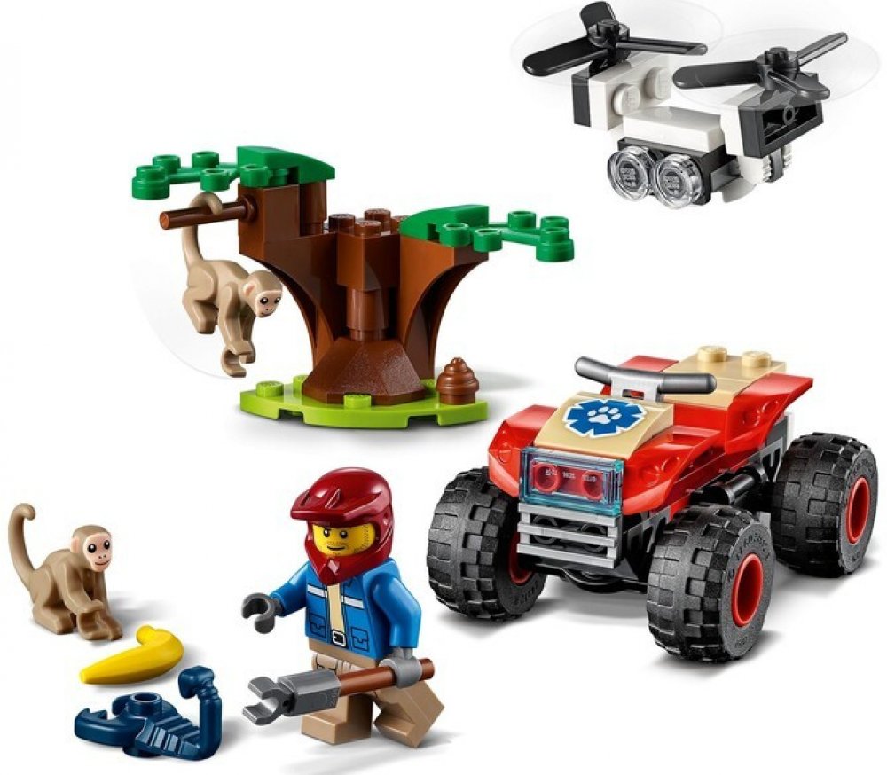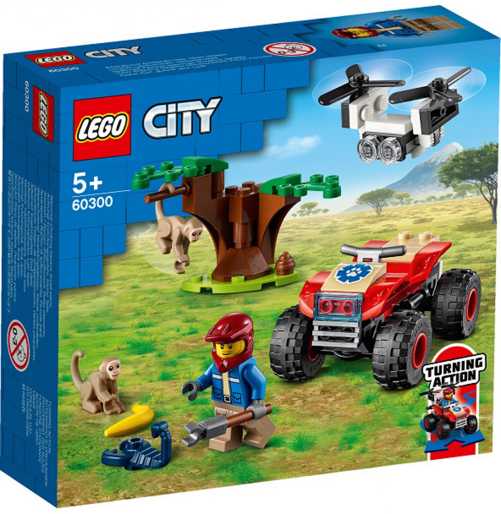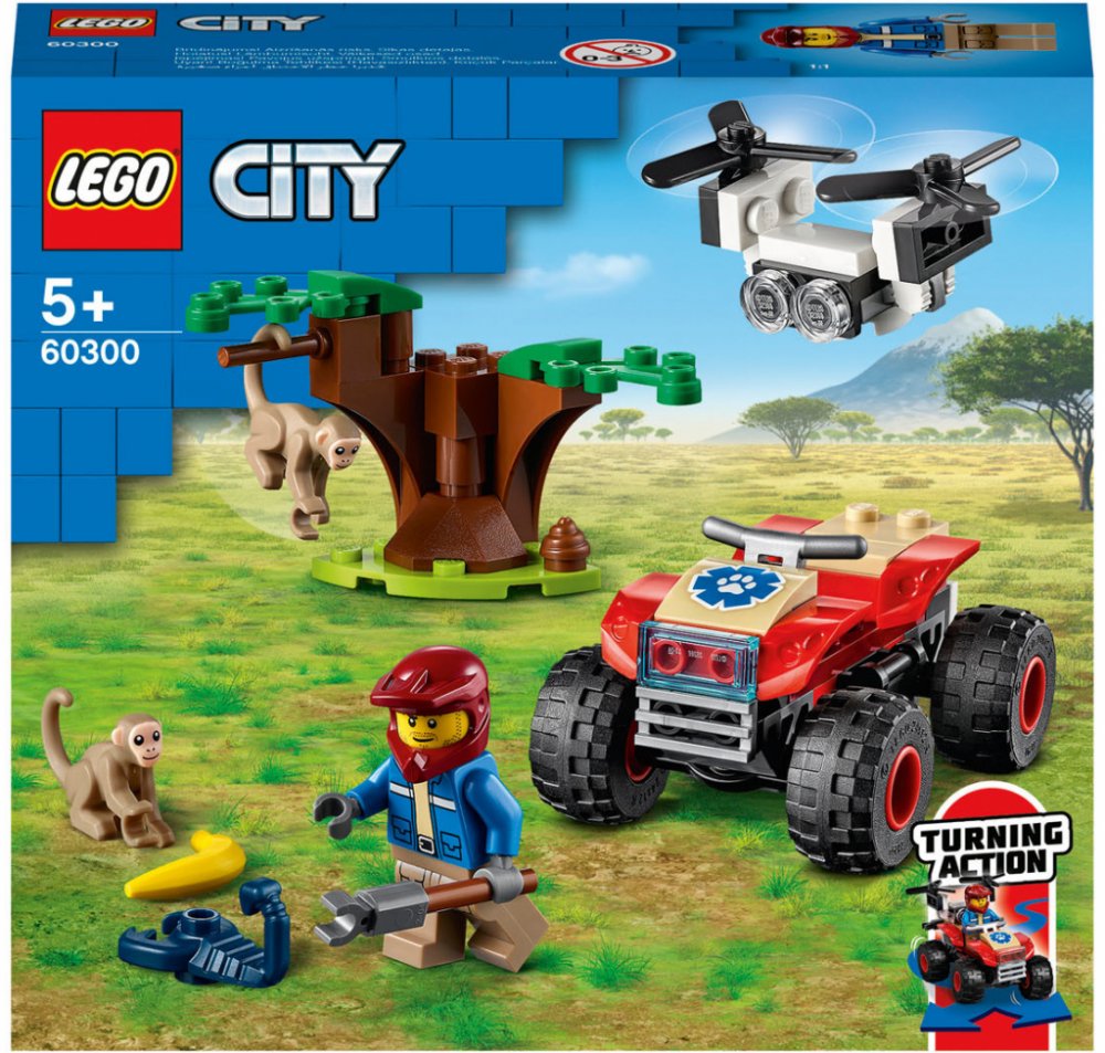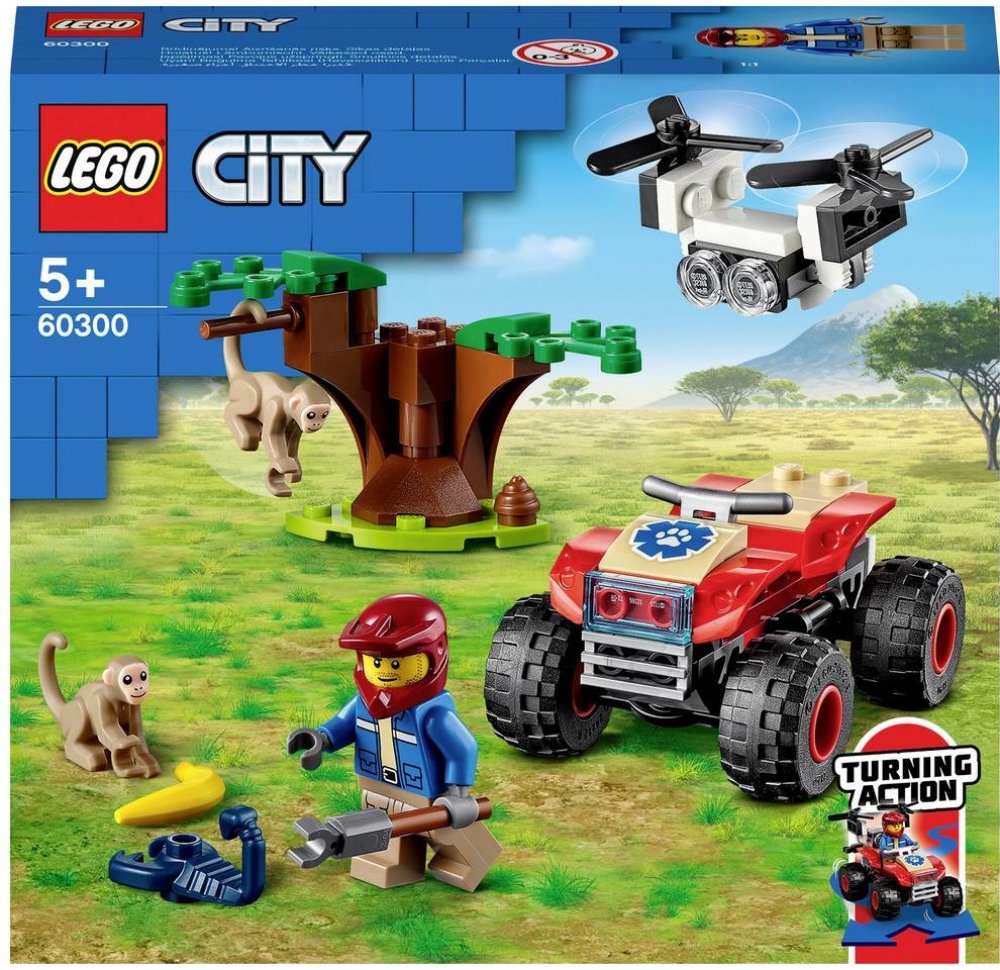 Zasvěťte začínající průzkumníky do tajů přírody se stavebnicí Záchranářská čtyřkolka do divočiny (60300) od LEGO® City, která zaujme parádním modelem čtyřkolky do každého terénu s funkčním řízením pomocí naklánění, uchopovačem a dronem Podrobný popis:Zasvěťte začínající průzkumníky do tajů přírody se stavebnicí Záchranářská čtyřkolka do divočiny (60300) od LEGO® City, která zaujme parádním modelem čtyřkolky do každého terénu s funkčním řízením pomocí naklánění, uchopovačem a dronem. Sada je situovaná do prostředí savany. Když se k tomu všemu přidá ještě průzkumník, opice a černý škorpion, nestojí záchranářským dobrodružstvím se zvířátky již nic v cestě. Skvělý herní a stavitelský zážitek pro děti Součástí této stavebnice je srozumitelnýnávod a pokyny Instructions PLUS v rámci bezplatné aplikace s LEGO návody na stavění pro chytré telefony a tablety. S těmito interaktivními pokyny, které obsahují nástroje přibližování a otáčení, se malí stavitelé co nevidět stanou opravdovými mistry! Vzrušující svět LEGO City Stavebnice LEGO City z prostředí divočiny děti přenesou do akčního světa dobře známých zvířat, realistických prostředí, parádních vozidel a inspirativních postav, které podněcují ke kreativnímu hraní inspirovanému skutečným životem.