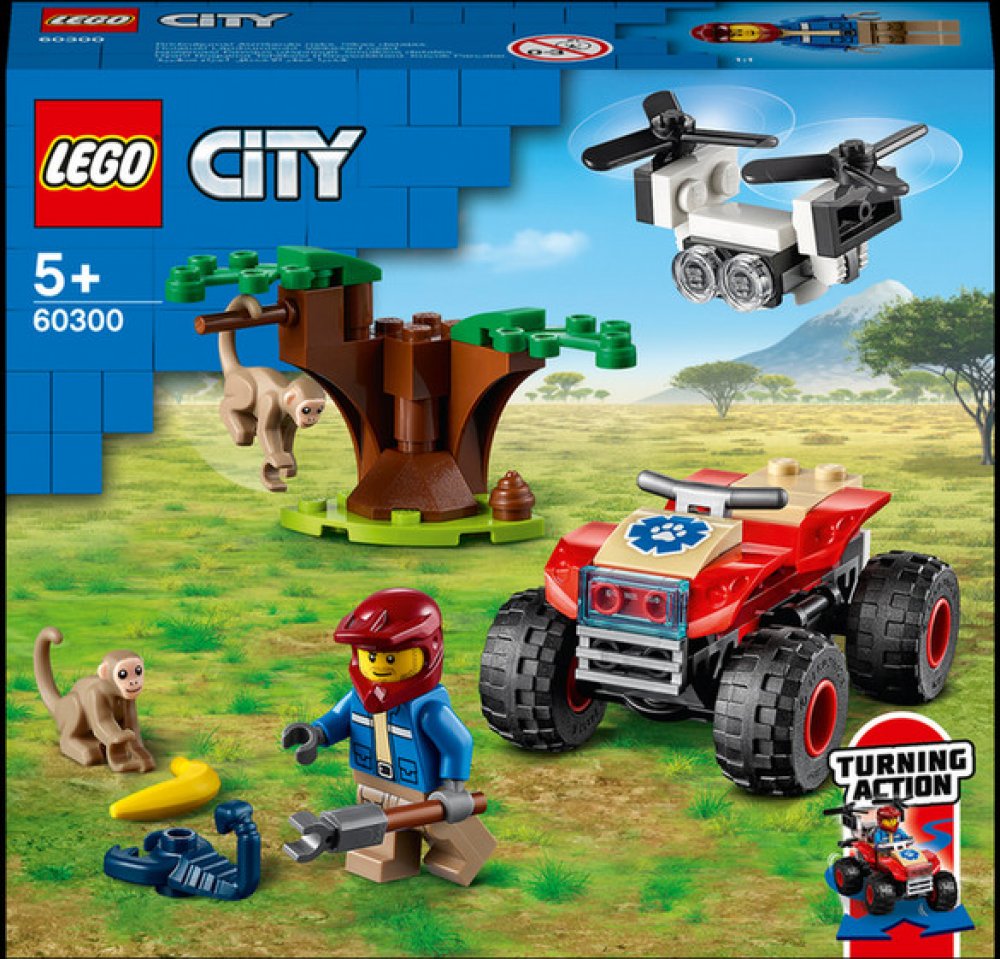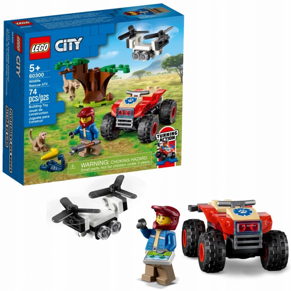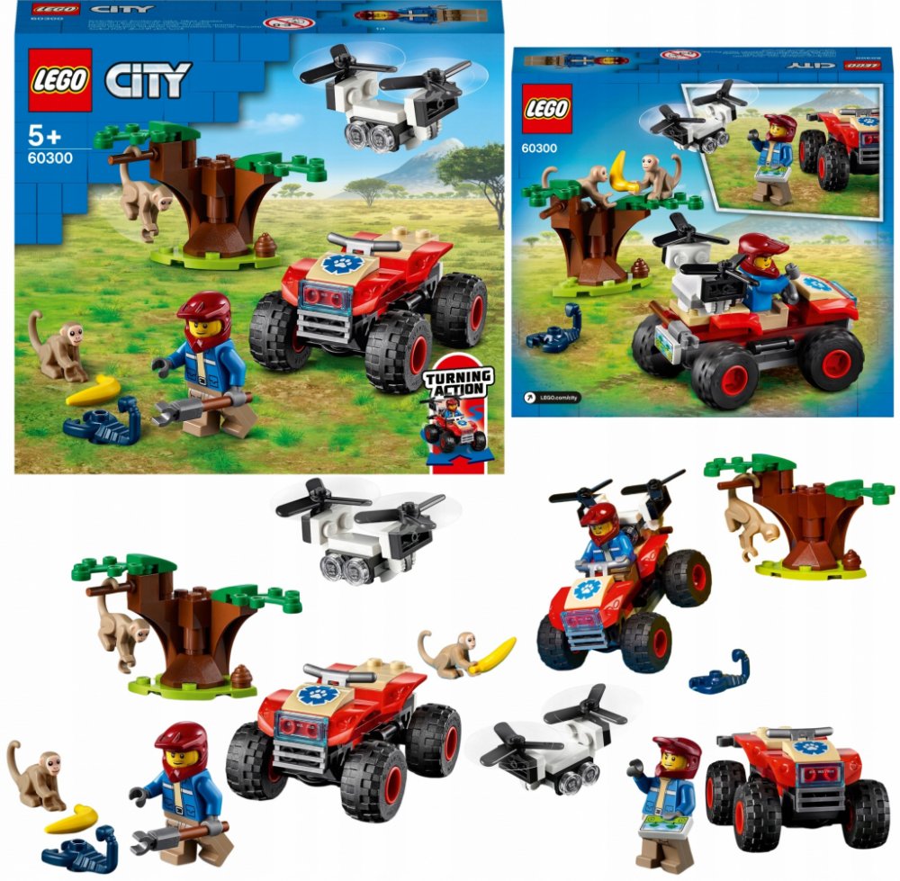 Zasvěťte začínající průzkumníky do tajů přírody se stavebnicí Záchranářská čtyřkolka do divočiny (60300) od LEGO® City, která zaujme parádním modelem čtyřkolky do každého terénu s funkčním řízením pomocí naklánění, uchopovačem a dronem Podrobný popis:Zasvěťte začínající průzkumníky do tajů přírody se stavebnicí Záchranářská čtyřkolka do divočiny (60300) od LEGO® City, která zaujme parádním modelem čtyřkolky do každého terénu s funkčním řízením pomocí naklánění, uchopovačem a dronem. Sada je situovaná do prostředí savany. Když se k tomu všemu přidá ještě průzkumník, opice a černý škorpion, nestojí záchranářským dobrodružstvím se zvířátky již nic v cestě. Skvělý herní a stavitelský zážitek pro děti Součástí této stavebnice je srozumitelnýnávod a pokyny Instructions PLUS v rámci bezplatné aplikace s LEGO návody na stavění pro chytré telefony a tablety. S těmito interaktivními pokyny, které obsahují nástroje přibližování a otáčení, se malí stavitelé co nevidět stanou opravdovými mistry! Vzrušující svět LEGO City Stavebnice LEGO City z prostředí divočiny děti přenesou do akčního světa dobře známých zvířat, realistických prostředí, parádních vozidel a inspirativních postav, které podněcují ke kreativnímu hraní inspirovanému skutečným životem.
