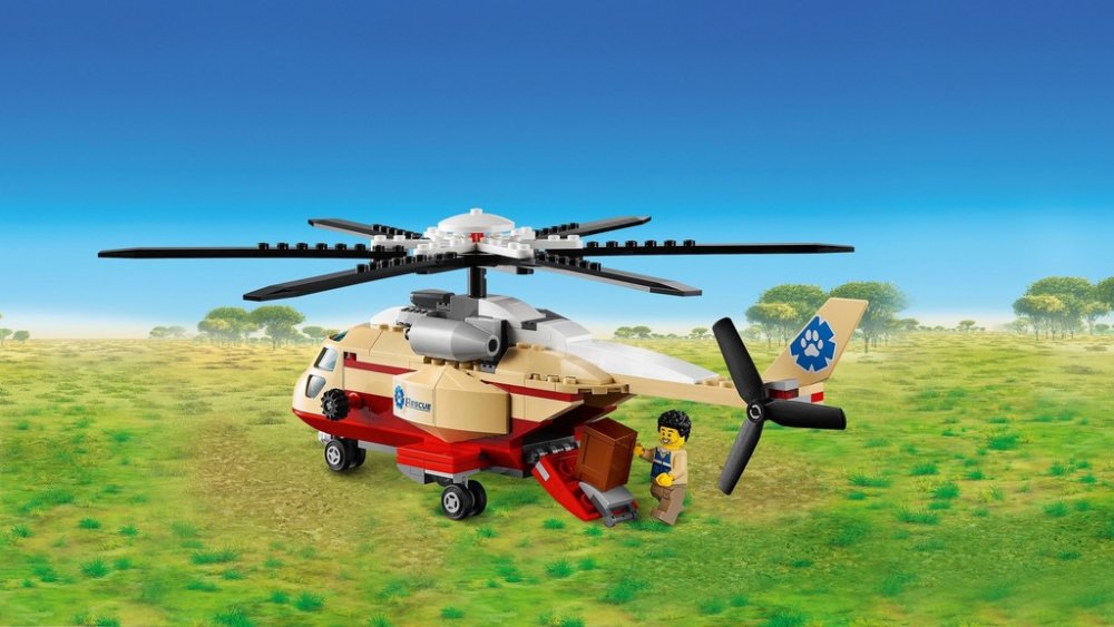 Dominantním a největším prvkem LEGO® City Záchranná operace v divočině je model vrtulníku, který je navíc vybaven navijákem. Jeho velikost je přes 12 cm na výšku, 35 cm na délku a 31 cm na šířku. Díky němu budou záchranné práce jednodušší a rychlejší.