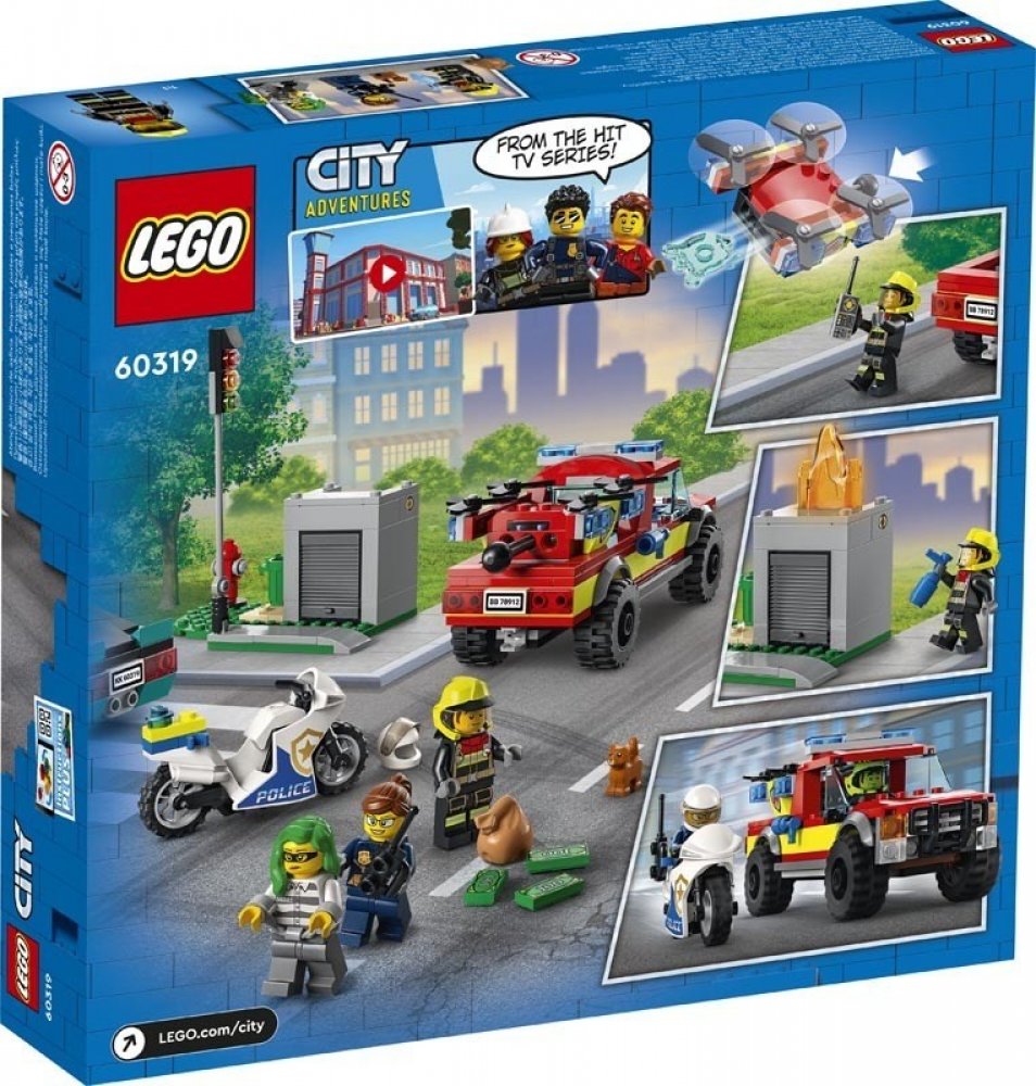 Otevřete dětem bránu do světa akčního hraní se stavebnicí Hasiči a policejní honička (60319) od LEGO® City, která obsahuje také postavu ze seriálu LEGO City Dobrodružství.