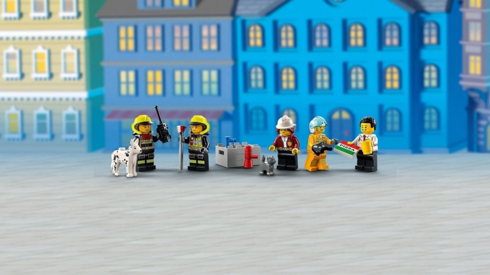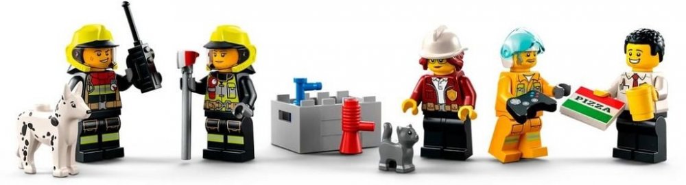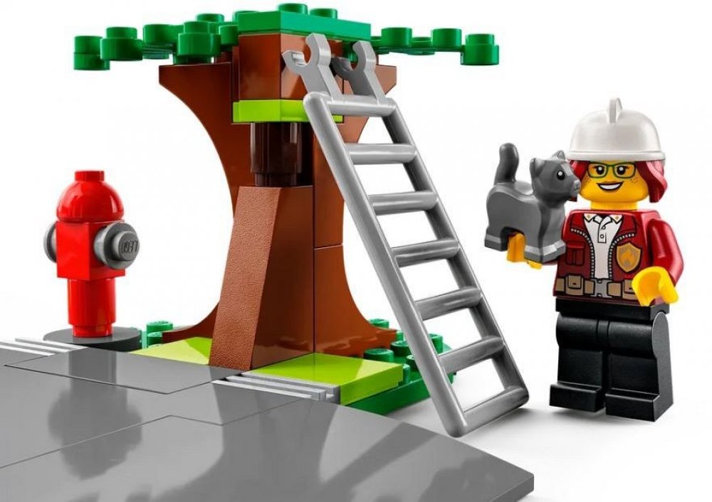 Pak už stačí přidat jen minifigurky hasičů, včetně 2 postav z LEGO City TV, k tomu figurky kočky a psa a zábavě nebude nic stát v cestě!