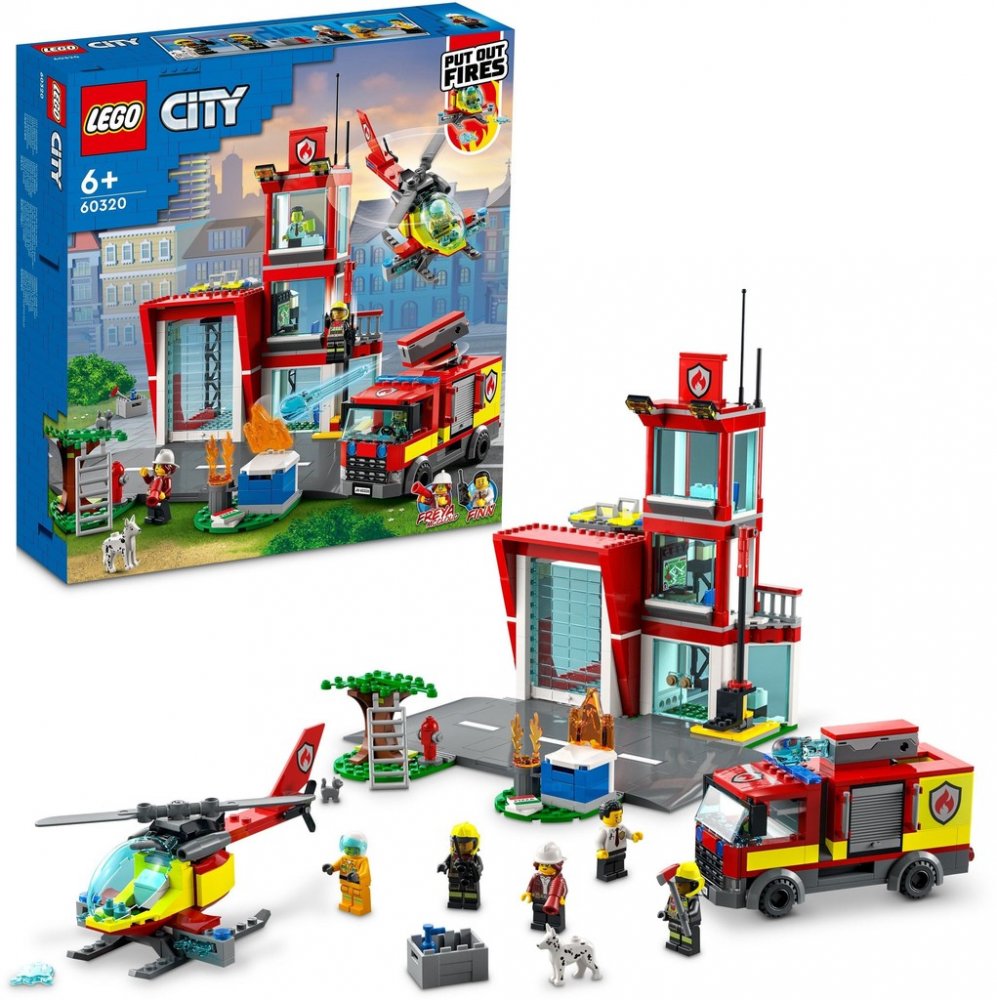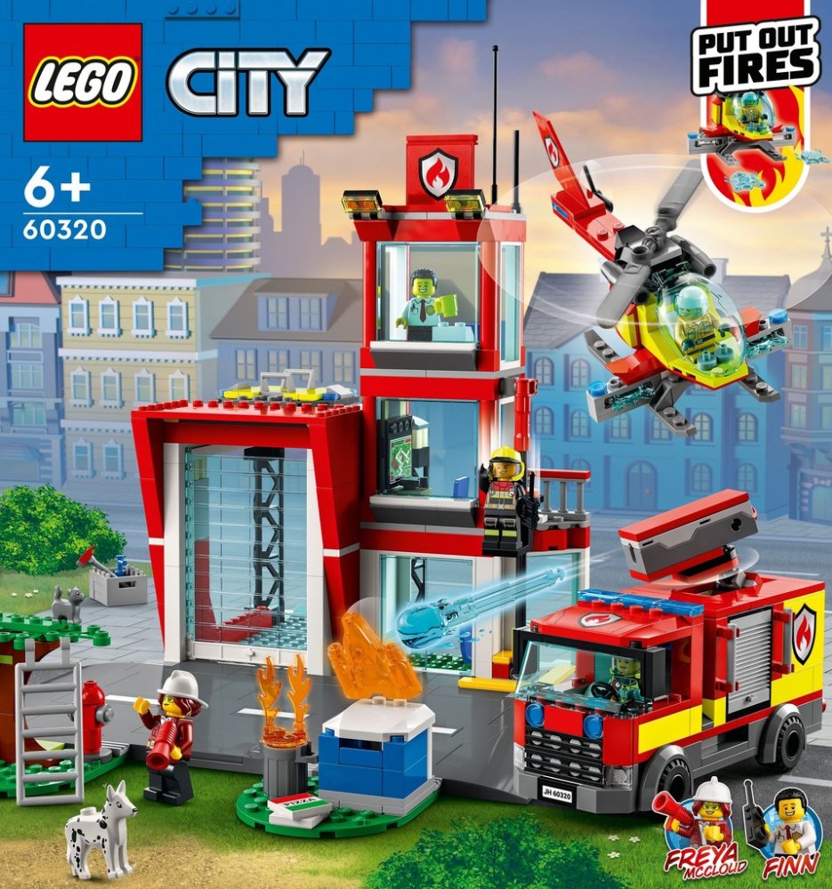 Co se ukrývá v krabici? Vše, co děti potřebují pro sestavení 3patrové požární stanice, auta a vrtulníku, dále 5 minifigurek, figurka psa a kočky a LEGO® Křižovatka umožňující propojení s ostatními stavebnicemi LEGO City.