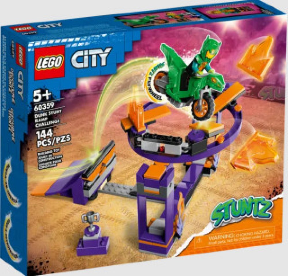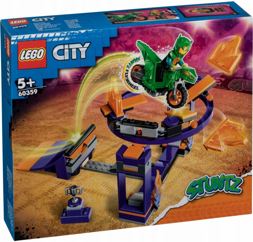 Stavebnice Kaskadérská rampa s obručí od LEGO® City (60359) zaručí hodiny úžasných kaskadérských triků a soutěží. Děti obruč umístí do vodorovné nebo svislé polohy, rozjedou kaskadérskou motorku a vyletí do vzduchu, kde předvedou super akční kousky. Sada obsahuje minifigurku jezdce Stuntz.