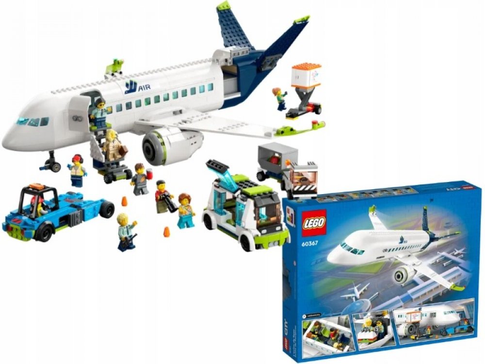 Krásný dárek pro fanoušky modelů letadel. Stavebnice LEGO® City (60367) Osobní letadlo je plná realistických detailů a funkcí. Elegantní model letadla se pyšní propracovaným interiérem s kokpitem, sedadly, uličkou a toaletou a nechybí ani schody k letadlu, letištní autobus, tahač letadel, vůz s občerstvením, zavazadlový vozík a 9 minifigurek.