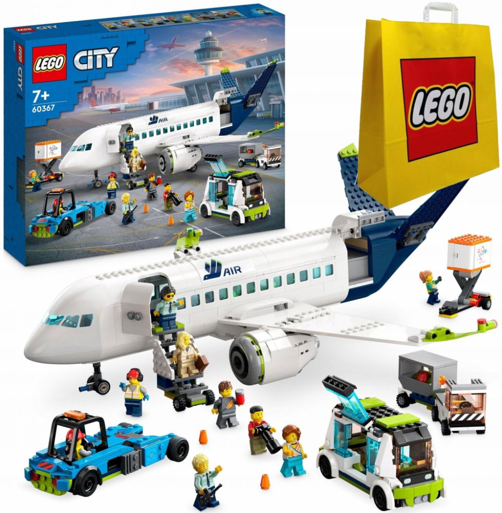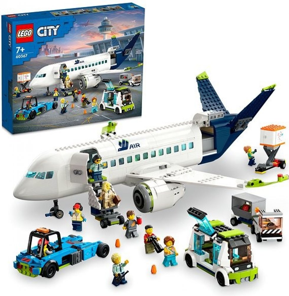 - Model dopravního letadla a pozemní podpůrná vozidla – Stavebnice LEGO® City (60367) Osobní letadlo s realistickými detaily a funkcemi