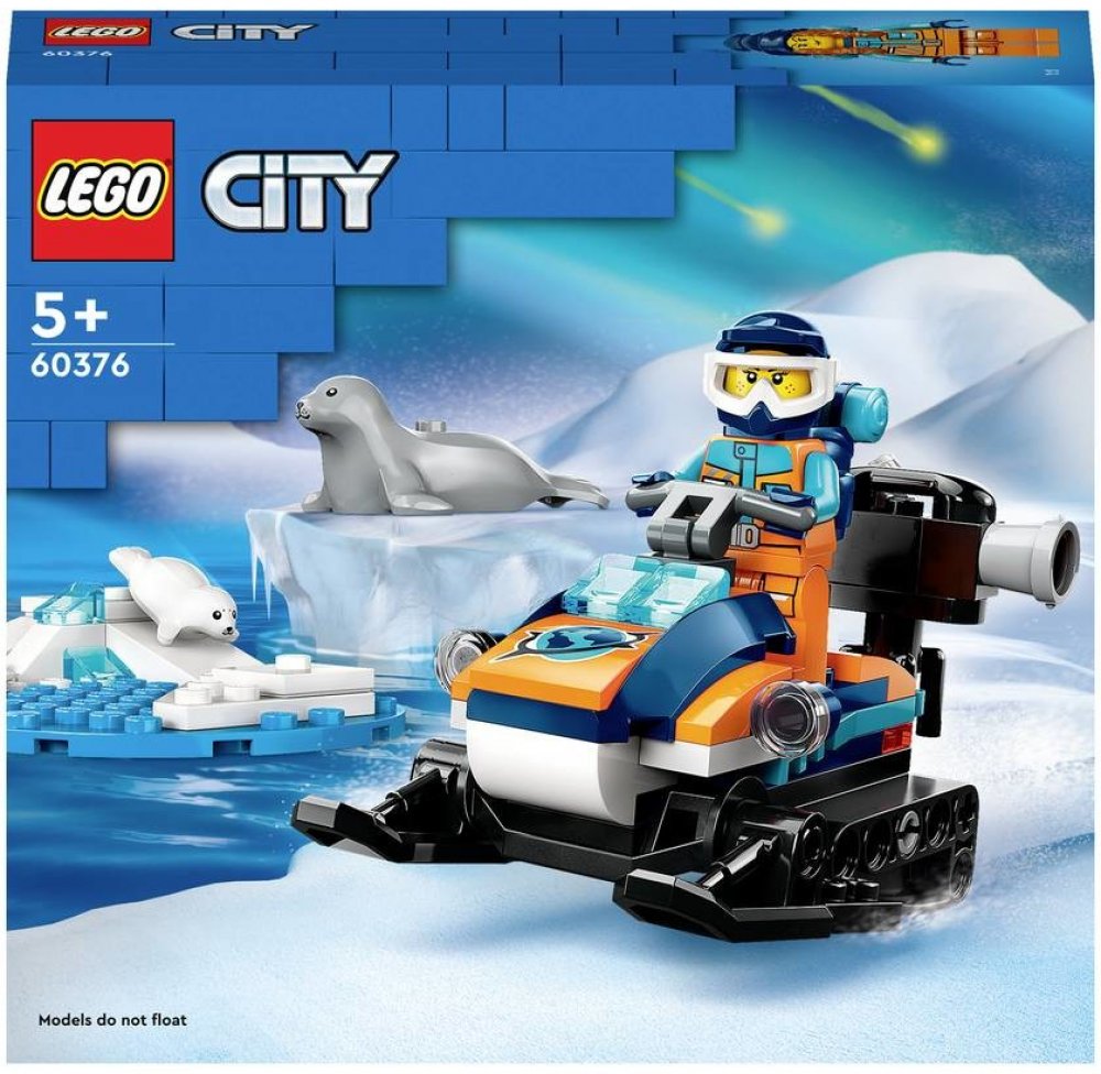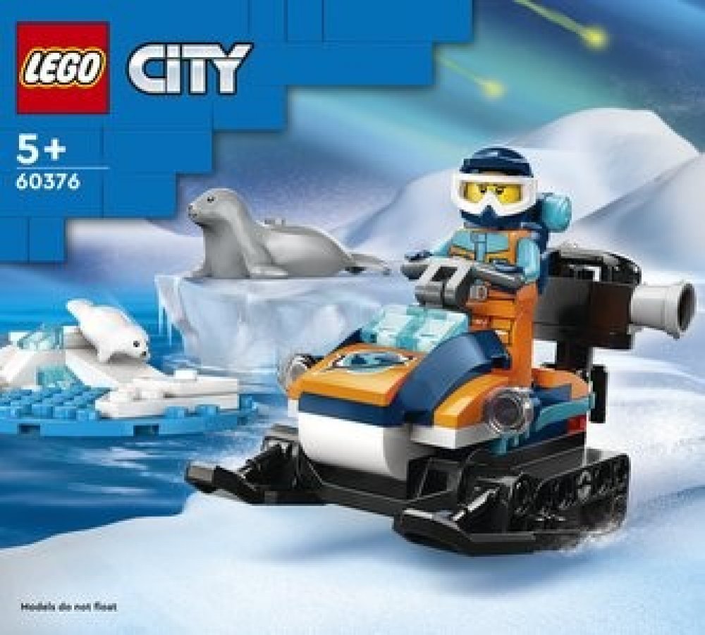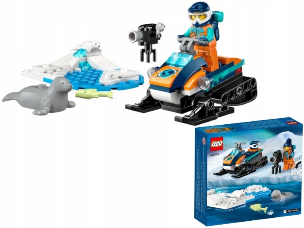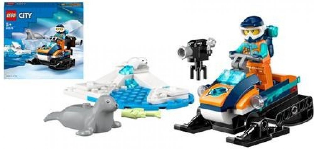 Zahrnuje hračkářský sněžný skútr s pásy a lyžemi, arktickou scenérii a minifigurku průzkumníka a navíc figurky tuleňů a tuleních mláďat.
