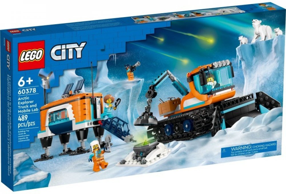 Stavebnice LEGO® City Arktická rolba a mobilní laboratoř (60378) pro děti od 6 let je plná realistických prvků, které nastartují fantazii a hraní, včetně pásového průzkumného vozidla s jeřábem a sněžným pluhem, a navíc obsahuje mobilní laboratoř, arktickou krajinu, meteorit, 4 minifigurky a 3 figurky ledních medvědů.