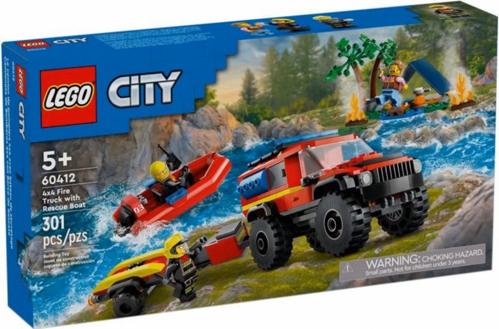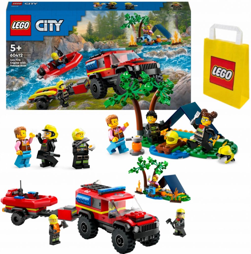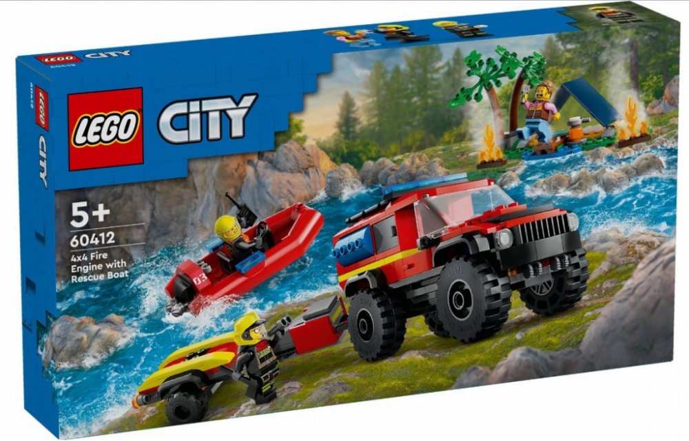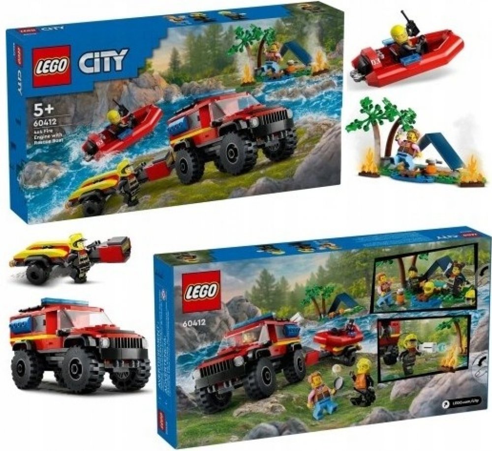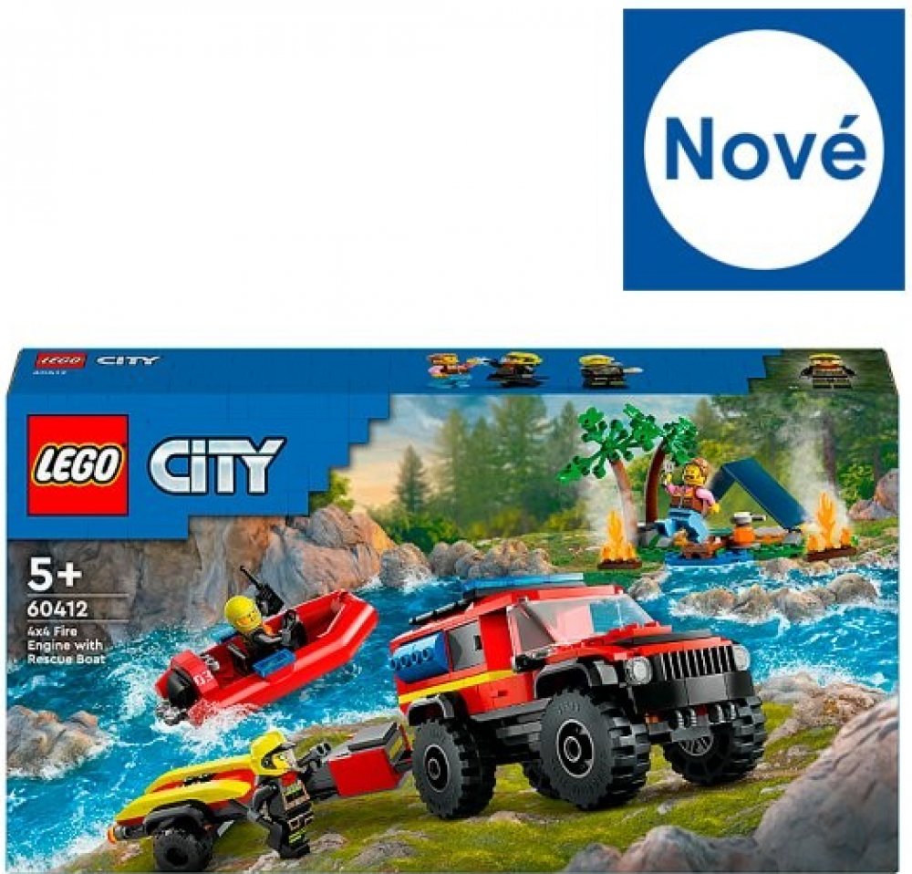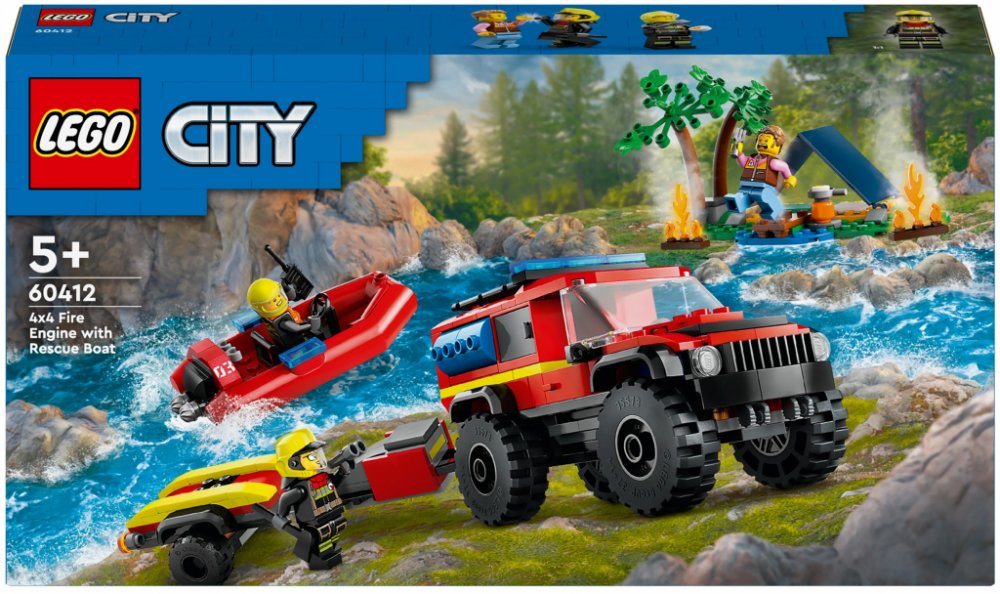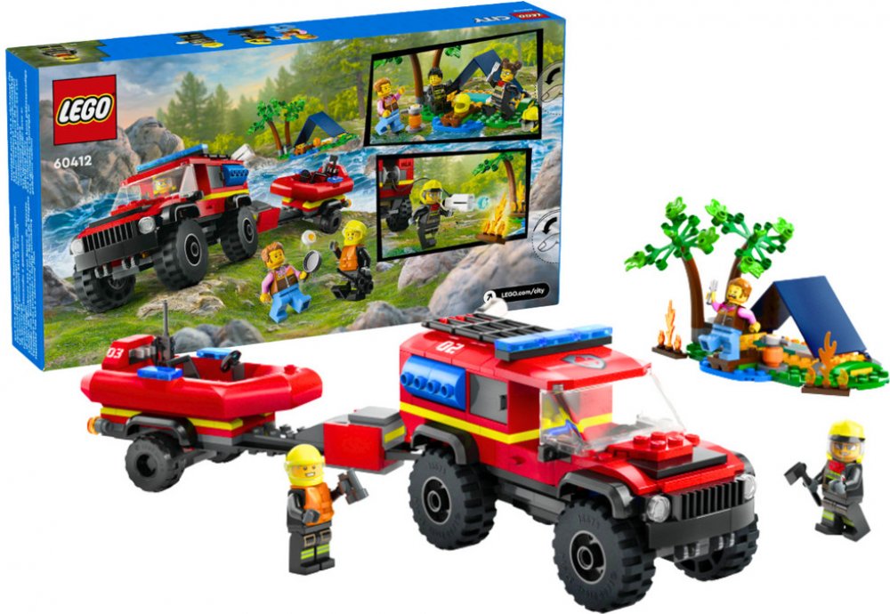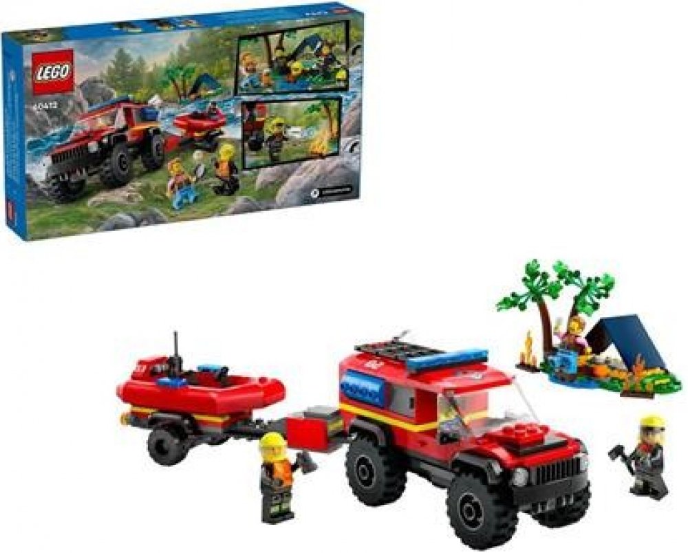 LEGO 60412 - Hasičský vůz 4x4 a záchranný člun z produktové řady LEGO CITY - Dětské plastové kostky v krabici.