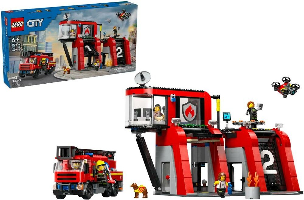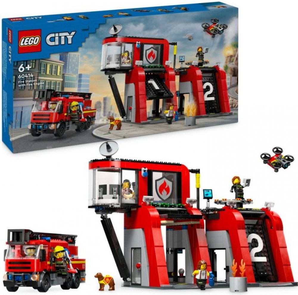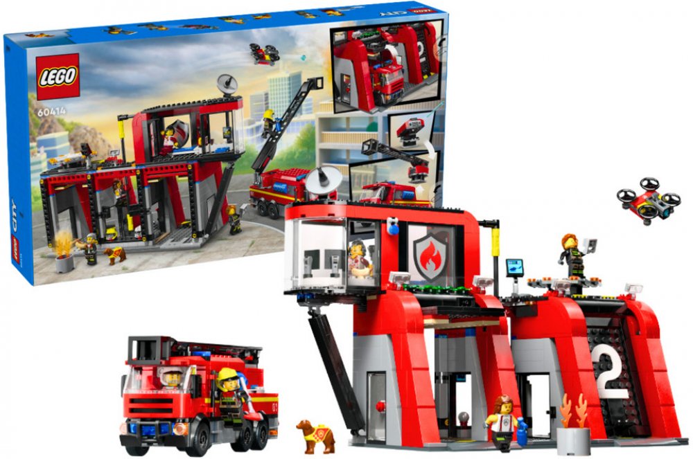 LEGO 60414 - Hasičská stanice s hasičským vozem z produktové řady LEGO CITY - Dětské plastové kostky v krabici.