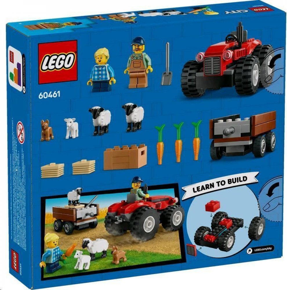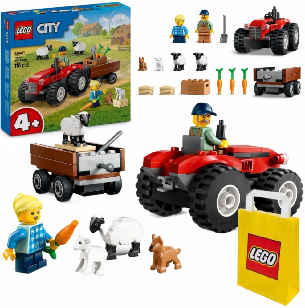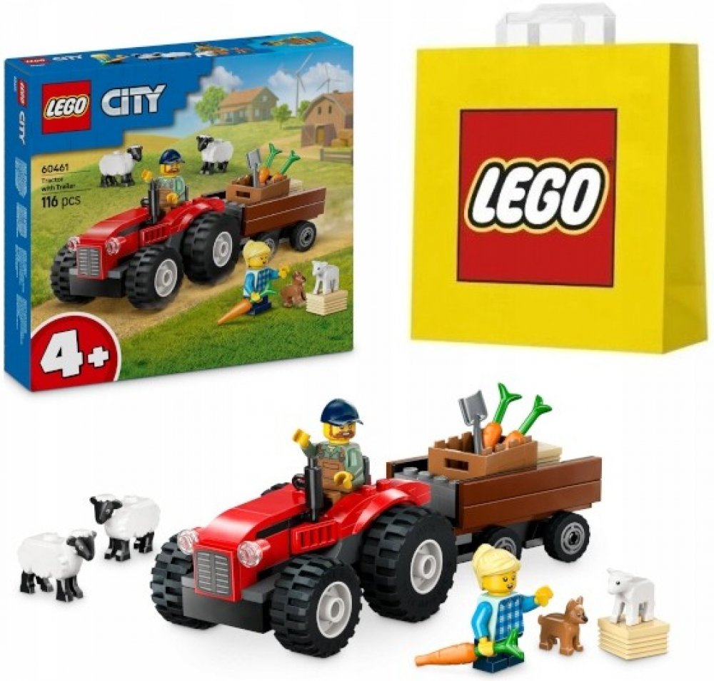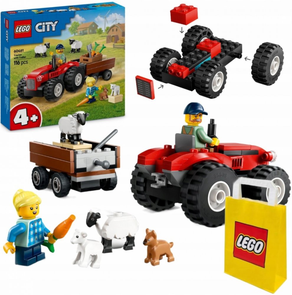 LEGO 60461 - Červený traktor s přívěsem a ovcemi z produktové řady LEGO CITY - Dětská plastová stavebnice v krabici.