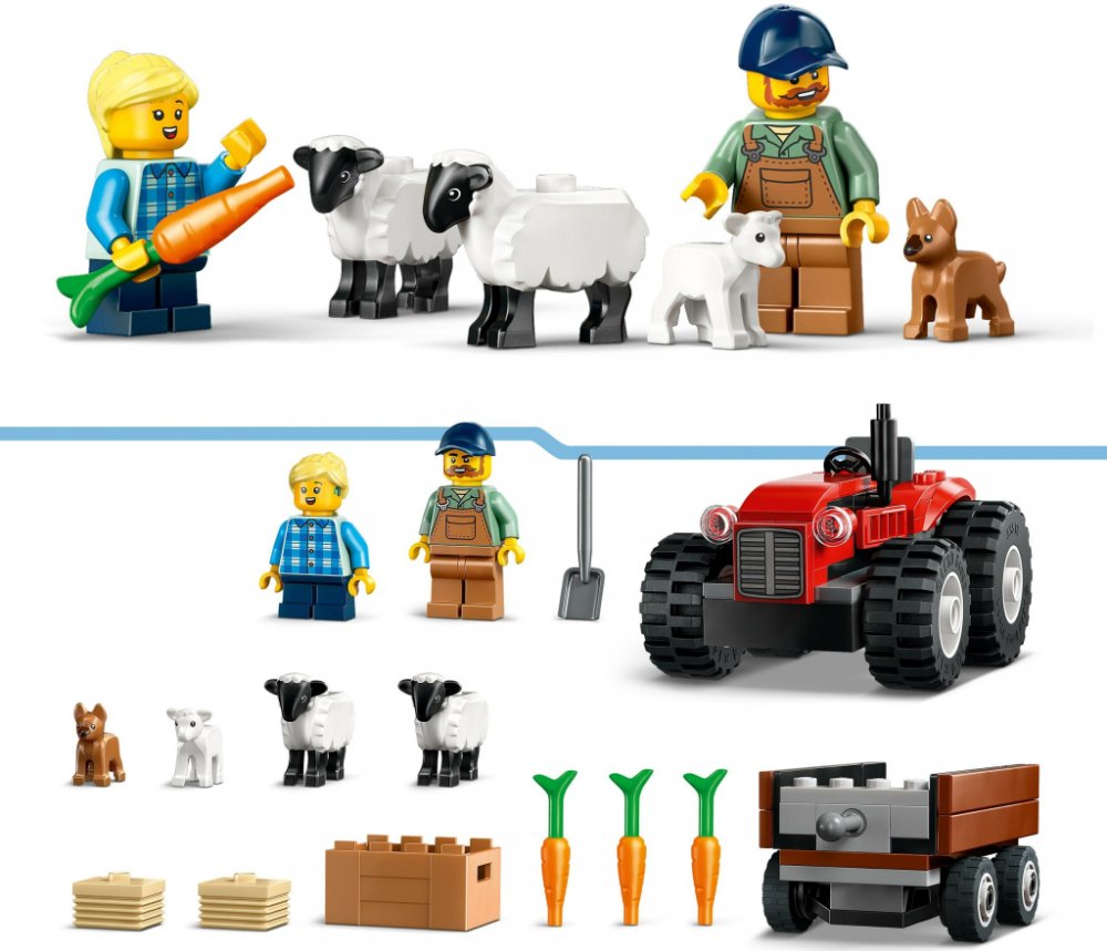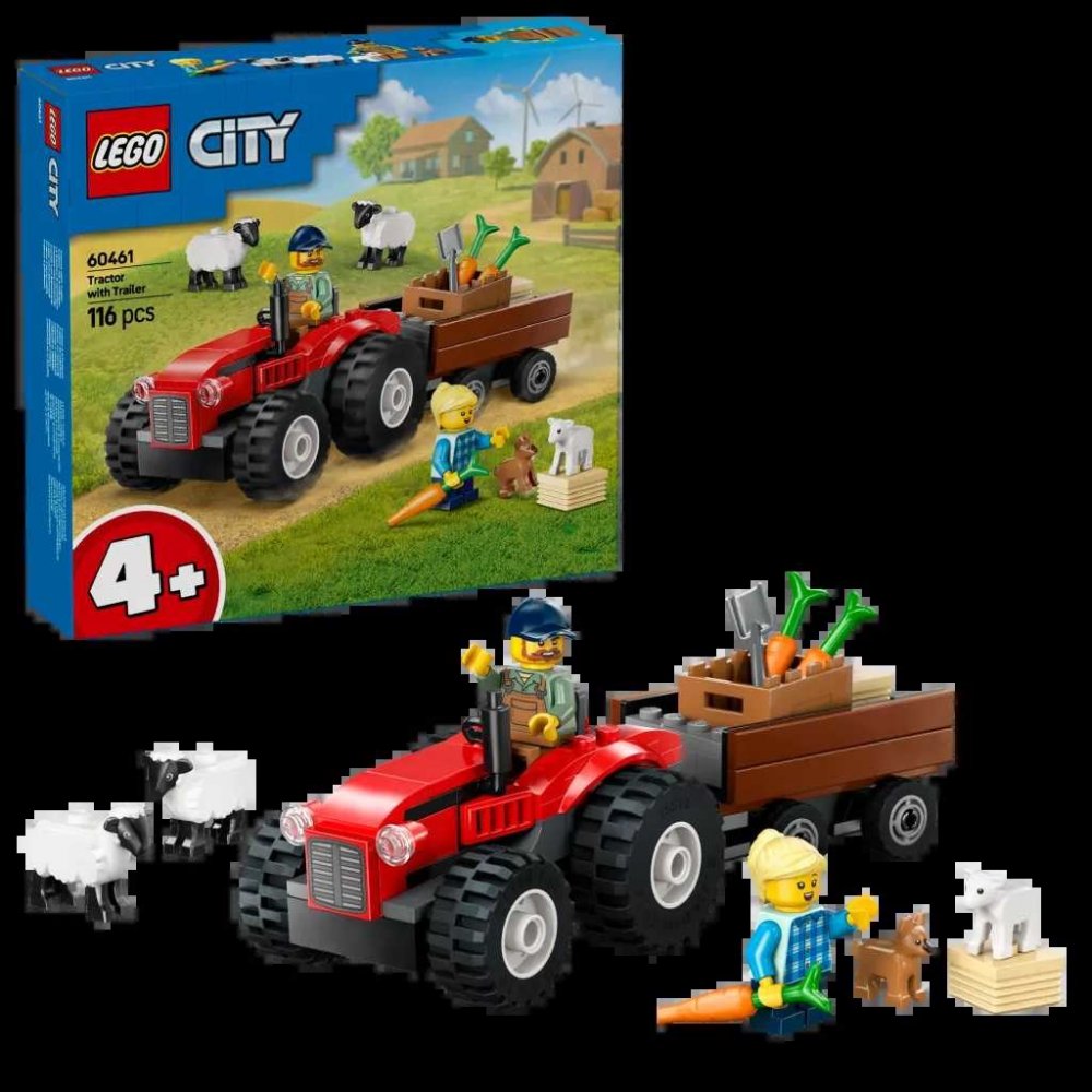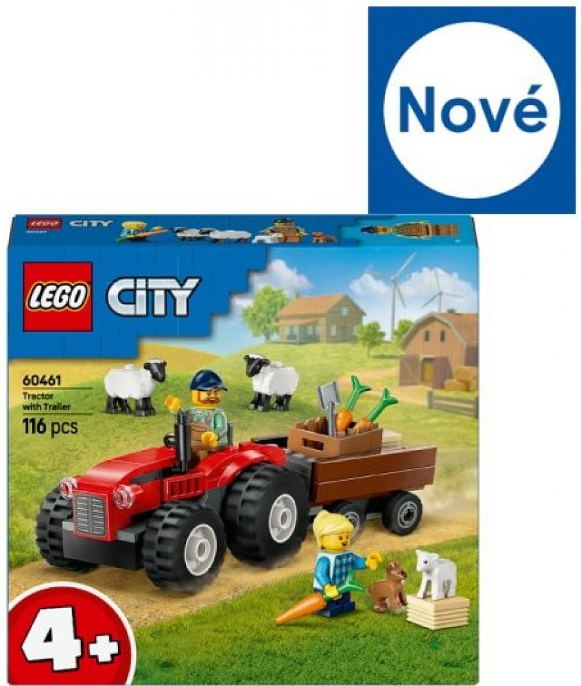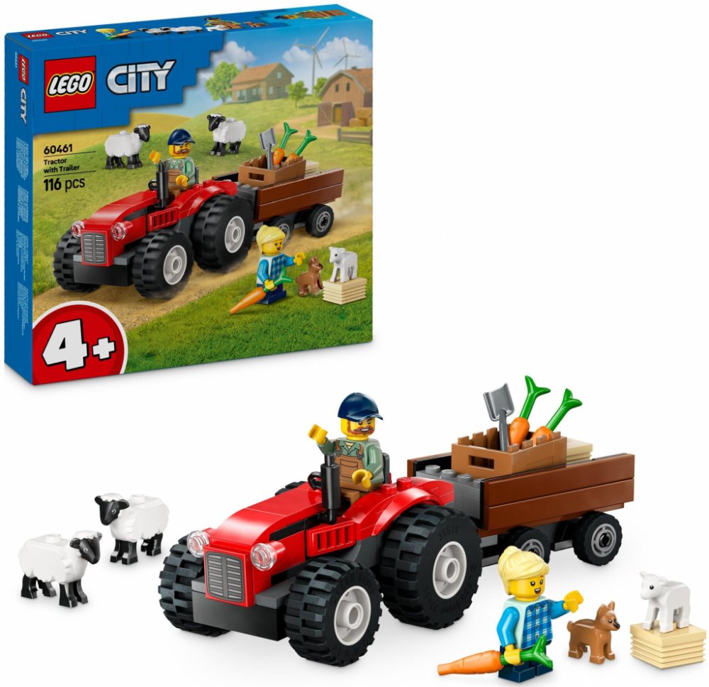 LEGO 60461 - Červený traktor s přívěsem a ovcemi z produktové řady LEGO CITY - Dětská plastová stavebnice v krabici.