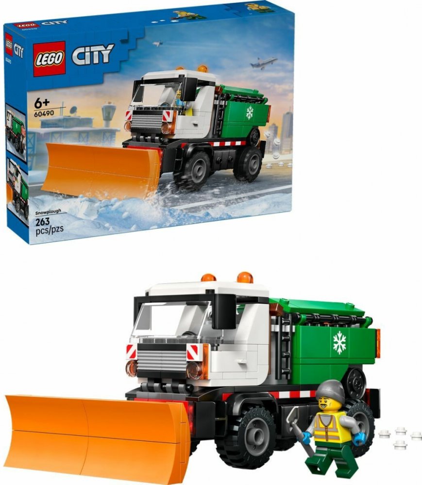 Potěšte malé hrdiny stavebnicí Lego City Sněžný pluh pro děti od 6 let. Stavebnice nabízí realistický model sněhového pluhu určeného k odklízení sněhu a sypání soli na zasněžených cestách. Tento model představuje robustní nákladní vůz s výrazným oranžovým předním pluhem, který je možné naklánět, zvedat a spouštět, což umožňuje dětem napodobit skutečnou práci sněhové techniky. Zadní část vozidla je vybavena zeleným zásobníkem na sůl, který je možné otevřít a naplnit malými bílými dílky představujícími sůl. Kabina vozidla je dvoumístná a lze ji odklopit pro přístup k motoru, čímž se přidává na autentičnosti modelu a umožňuje dětem detailnější prozkoumání jeho konstrukce. Na bocích jsou umístěny úložné boxy na nářadí a spony pro uchycení pracovních pomůcek, což dodává modelu praktický vzhled a podporuje kreativní hraní. Součástí stavebnice je i minifigurka řidiče v pracovní uniformě s reflexní vestou a čepicí, která drží nářadí, což podporuje příběhové hraní a rozvíjí dětskou představivost. Funkce sypání soli je aktivována tlačením vozidla, kdy malé bílé dílky vycházejí ze zadní části zásobníku, což přináší interaktivní prvek a zábavu. Model je navržen tak, aby podporoval rozvoj motorických dovedností a prostorové představivosti, a lze jej kombinovat s dalšími stavebnicemi z řady Lego City pro rozšíření herního zážitku. Model je vyveden v kombinaci bílé, černé a zelené barvy s oranžovými bezpečnostními prvky, které jsou typické pro pracovní vozidla v zimním období.