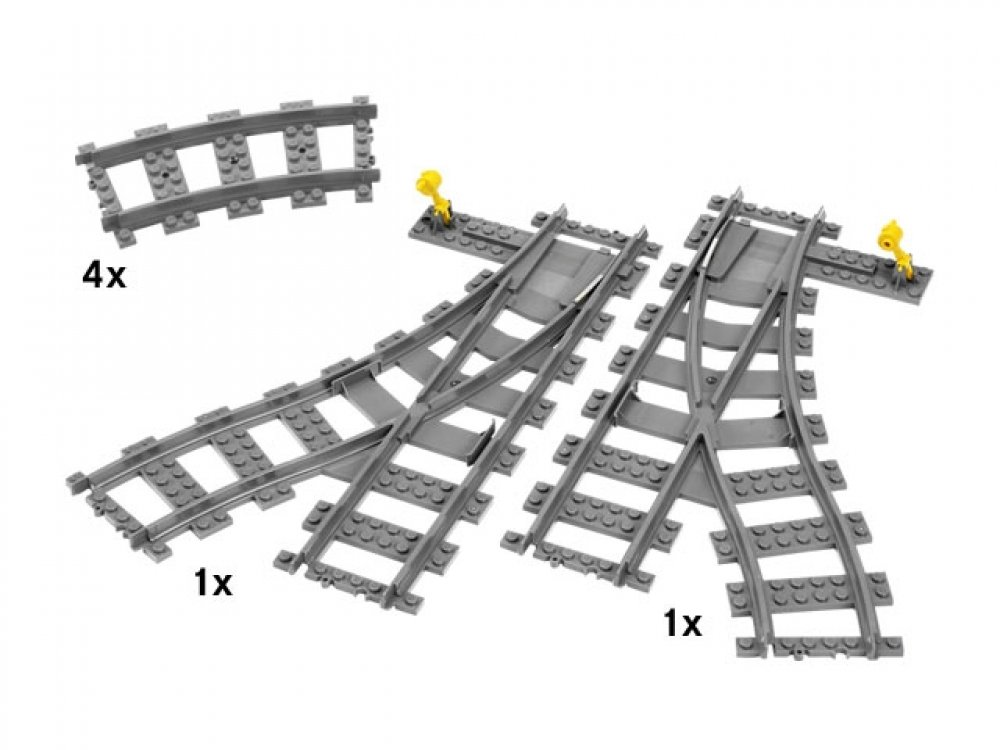 Přídavné výhybky k tratím LEGO. Součástí jsou čtyři zatáčky, jedna levotočivá výhybka a jedna pravotočivá výhybka.