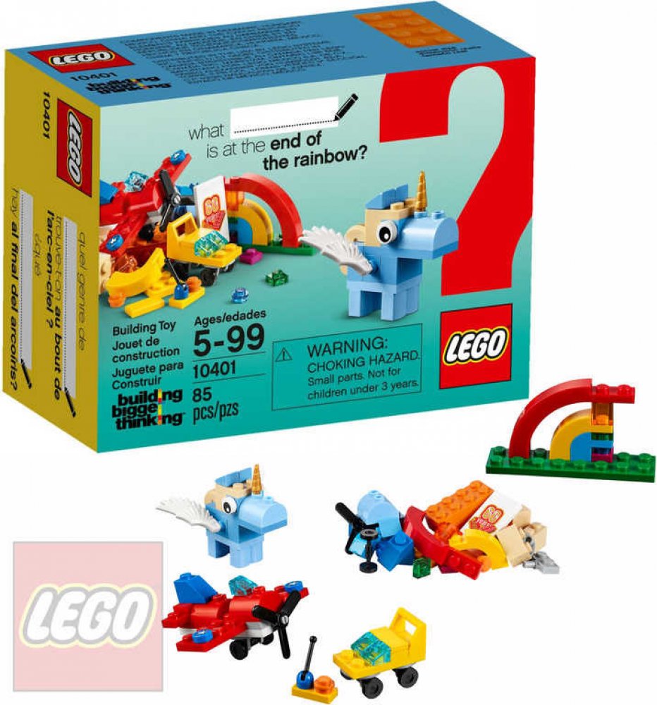 Co najdeš na konci duhy? Oslav s námi radost, kterou přináší tvoření z kostek LEGO®. Postav pestrobarevné letadlo a vzlétni do oblak nebo dej průchod svojí fantazii a vytvoř úžasná, dosud neznámá stvoření. Postavit můžeš cokoliv, co ti dovolí tvá představivost. Svůj výtvor pak můžeš přestavět a hrát si s ním celý den. Z malých kostek můžou vzejít ohromné věci!