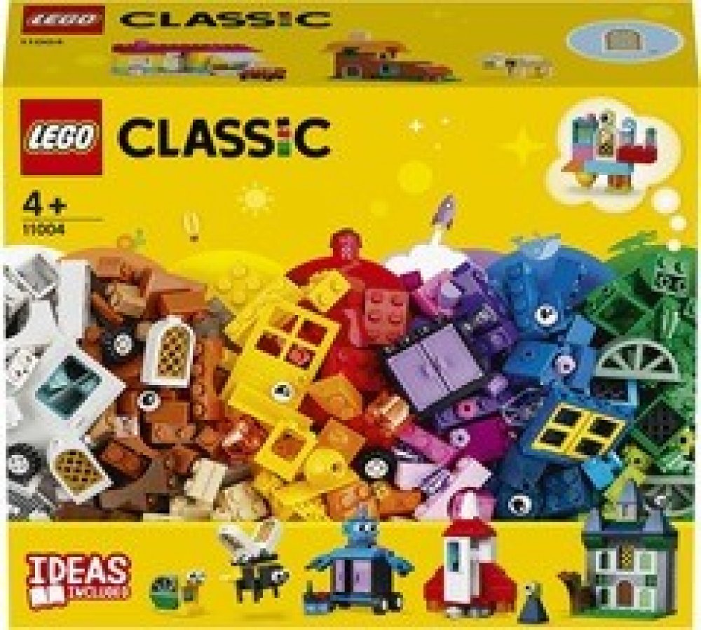 Se sadou LEGO® Classic 11004 Kreativní okénka se děti a rodiny mohou naučit stavět zcela novými a nápaditými způsoby. Stavebnice obsahuje výběr pestrobarevných LEGO kostek, očí a kol, a k tomu navíc širokou škálu oken a dveří pro stavění zábavných modelů. Od robota se skříňkou v bříšku až po domek ve tvaru boty – děti objeví nové kreativní způsoby, jak stavět LEGO zvířata, budovy a předměty pomocí klasických LEGO dílků.