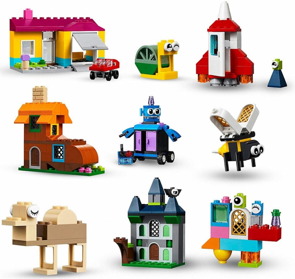- Sada obsahuje velký výběr oken a dveří, a navíc barevný mix LEGO® dílků včetně očí, kol a kostek, které dětem umožní stavět klasické LEGO hračky.
