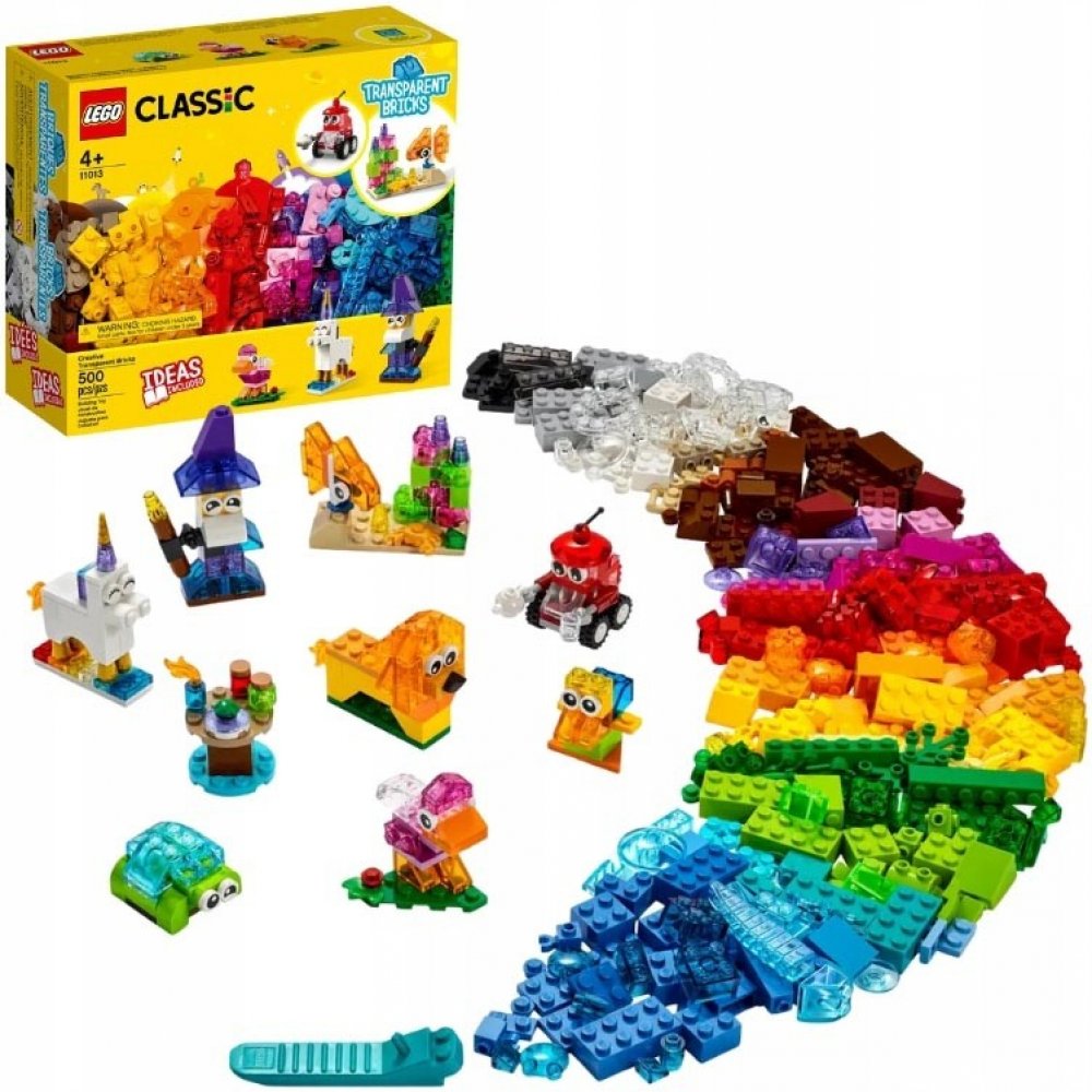 - Nakopněte dětskou kreativitu prostřednictvím této stavebnice s 500 dílky. Sada obsahuje řadu průhledných LEGO® dílků a klasických LEGO kostek. Nechybí třeba oči nebo kola, se kterými si můžete sestavit 8 i více zábavných modelů.