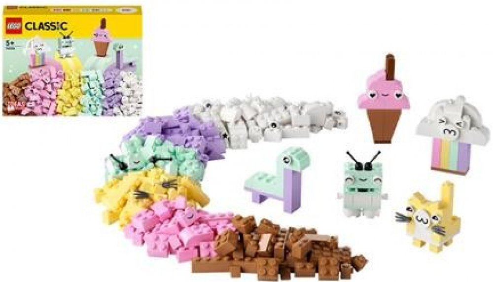 Inspirujte malé stavitele od 5 let s pomocí stavebnice Pastelová kreativní zábava. Poutavé kostky inspirují děti ke stavění, ať už budou tvořit jednoduché modely podle návodu, nebo dají průchod umělci, který se v nich skrývá, a postaví něco svého. Tato kreativní stavebnice obsahuje 333 kostek různých tvarů a velikostí v pastelových barvách. 18 kostek zdobí oči, kterými děti vdechnou svým výtvorům život. Nechybí ani srozumitelný tištěný návod na sestavení 5 zábavných modelů – mráčku, zmrzliny, dinosaura, kočky a robota. A jakmile děti získají tvůrčí sebedůvěru, mohou se pustit do stavění čehokoli, co je jen napadne! Digitální verzi návodu na stavění najdete také v aplikaci LEGO Builder.