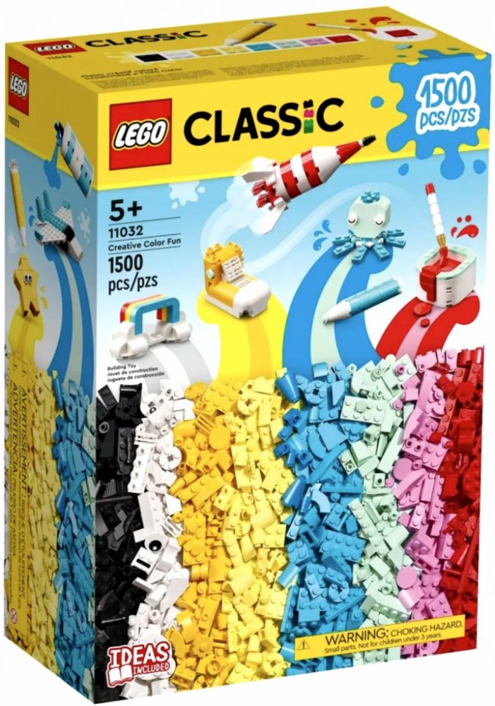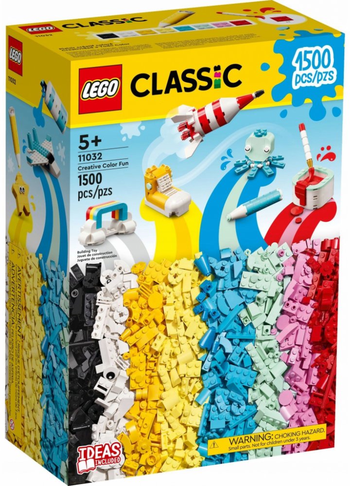 Inspirujte kreativní děti k prozkoumávání umění a tvoření s kostkami LEGO®. Tato stavebnice s 1 500 dílky je nabitá barvami, nápady na modely, doplňky a dalším. - Děti mohou s touto obrovskou sbírkou barevných kostek znovu a znovu tvořit - Obsahuje 1 500 kostek v mnoha pestrých barvách, zábavné doplňky a návody k modelům - Jasné tištěné návody pomohou dětem stavět a přizpůsobit řadu zábavných modelů - Dárek k narozeninám, Vánocům nebo jiné příležitosti dětem od 5 let, které milují umění a tvoření - Nechybí ani srozumitelný obrázkový návod, díky němuž půjde stavění rychle od ruky - Řada LEGO® Classic otevírá malým stavitelům bránu do světa kreativního sebevyjádření - Dílky LEGO® splňují nejvyšší oborové standardy kvality - Kostky a dílky LEGO® splňují přísné bezpečnostní standardy Pokud hledáte herní stavebnici plnou kreativních možností, je pro vás ta pravá stavebnice LEGO® Classic (11032) Kreativní hraní s barvami, která je plná inspirace k uměleckému tvoření pro děti od 5 let. „Malování“ s kostkami Tato tvořivá stavebnice s 1 500 dílky LEGO v mnoha zářivých barvách nabízí jedinečné kreativní hraní a uměleckou inspiraci. Jasné obrázkové návody dětem ukazují, jak postaví zábavné modely, jako je chobotnice, raketa a bota. Poté můžou svůj model přizpůsobit různými barvami a zábavnými doplňky, jako jsou kolečka a sada očí. S tolika dílky v tolika barvách začnou děti brzy stavět své vlastní kreativní nápady. Pro ještě více digitální zábavy si malí stavitelé mohou přibližovat, otáčet ve 3D a sledovat svůj pokrok pomocí intuitivní aplikace LEGO® Builder. Hraje si celá rodina Stavebnice z řady LEGO Classic vhodné od 5 let přinášejí inspiraci pro děti a dospělým nabízejí perfektní příležitost, jak sdílet vzácné vývojové milníky a zábavu při stavění se svými ratolestmi.