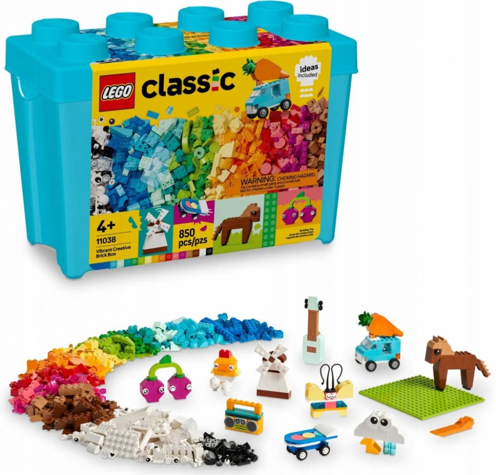 Ve stavebnici Barevný kreativní box najdete spoustu kostek a dílků LEGO, které svými nepřebernými možnostmi inspirují malé stavitele od 4 let. Tvořivé děti si přímo zamilují řadu okouzlujících barevných kostek a sestavitelných hraček, které najdou v tomto boxu. Deset nápadů, které dětem pomohou začít s tvořením: kůň, dodávka s mrkví, třešeň, kazeťák, otáčecí větrný mlýn, skateboard, mrak, motýl, kuře a kytara. Pak je mohou přestavět na další hračky jako třeba letadlo, jednorožce, model domu, květinu, zmrzlinu, auto, strom a upravený skateboard. Kostky poté mohou zamíchat a vybrat si jiné barvy, tvary a velikosti a vyměnit dveře, okna, kola, rostliny, oči a průhledné dílky a vytvořit vlastní jedinečné modely. Hračky LEGO Classic přináší spoustu nápadů a inspirace a umožňují rodičům sdílet stavitelskou zábavu a vývojové milníky s jejich dětmi.