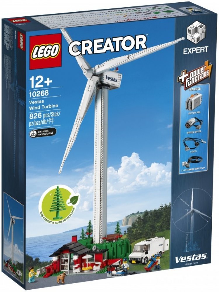 Oslav úspěchy ekologických inovací se sadou LEGO® Creator Expert 10268 Větrná turbína Vestas. Tento model byl vyvinut ve spolupráci se společností Vestas a zachycuje eleganci a ladnost pohybů této ikonické větrné elektrárny. Navíc nabízí také model smrku z udržitelného plastu na rostlinné bázi, novinku 2019. Stavba je přibližně 1 m vysoká a tyčící se nad zalesněným kopcem a útulným domkem s hezkou terasou, poštovní schránkou, květinami a bílým plotem. Otoč elektrárnu do požadovaného směru a aktivuj motor Power Functions, abys roztočil lopatky turbíny a rozsvítil tak světlo na verandě domu. Tato úžasná sběratelská stavebnice byla navržena tak, aby její skládání představovalo určitou výzvu a zároveň přinášelo obohacující kouzelný zážitek s nádechem nostalgie. Model si můžeš vystavit doma nebo v kanceláři. Tato velká LEGO sada obsahuje také servisní vozidlo Vestas a 3 minifigurky: 2 Vestas servisní techniky s bezpečnostní přilbou a ženu, a navíc figurku psa.