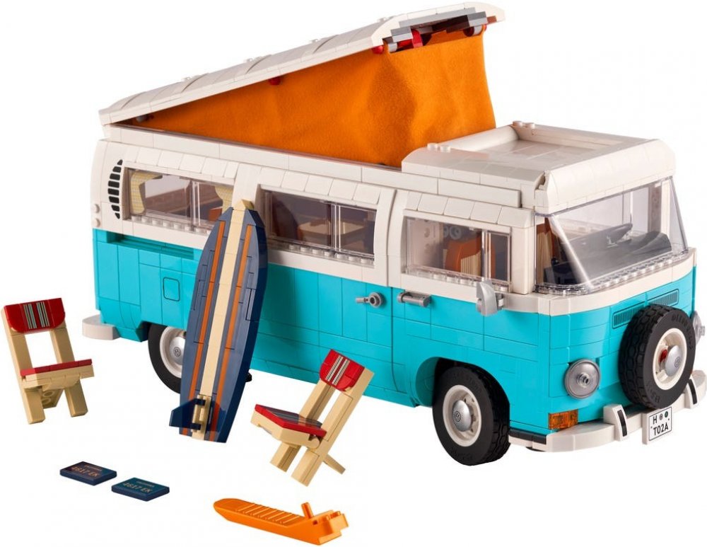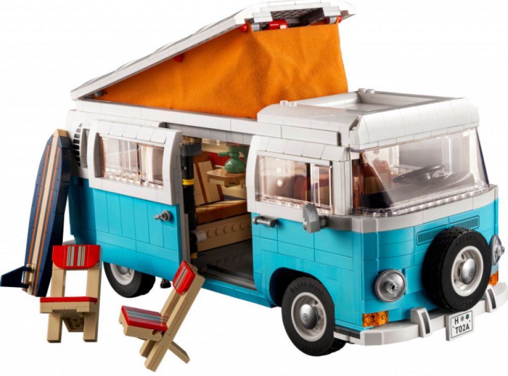 Fanoušci dodávek si zamilují krásné detaily typické pro vozy značky VW. Postavte si realistický model kempovací dodávky s pomocí zbrusu nových LEGO dílků, včetně ikonického čelního skla, látkových závěsů a látkového stanu. K dispozici budete mít také novou LEGO pneumatiku, funkční řízení, posuvné dveře, surfovací prkno, 2 skládací židle a květinové samolepky.