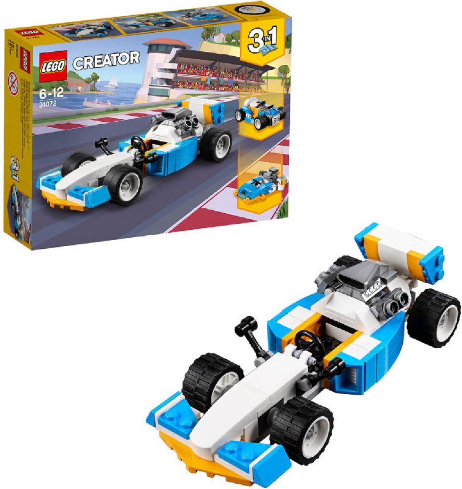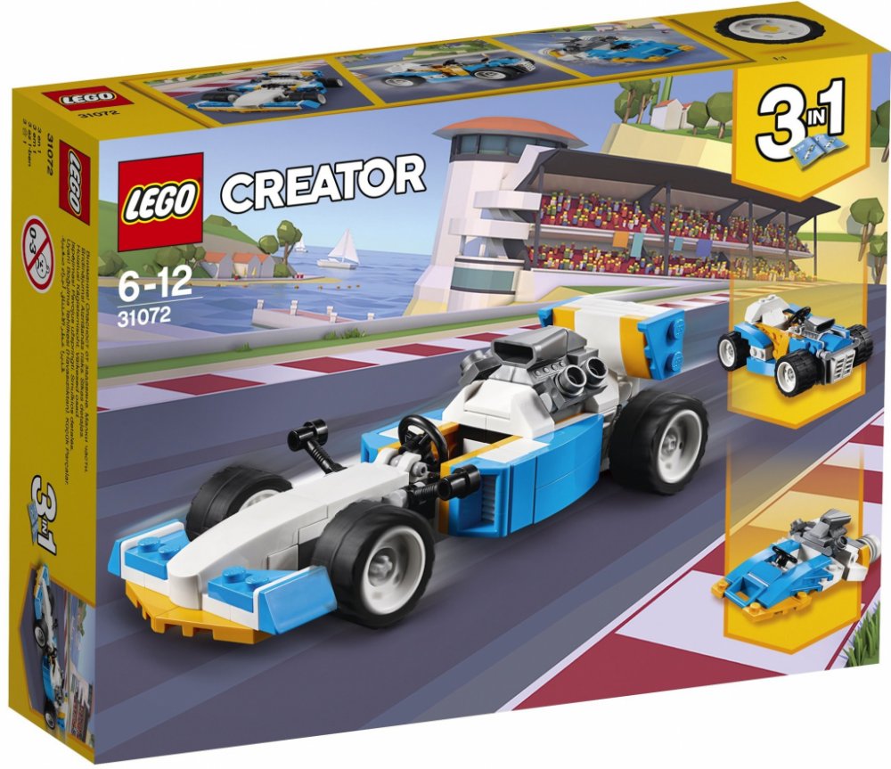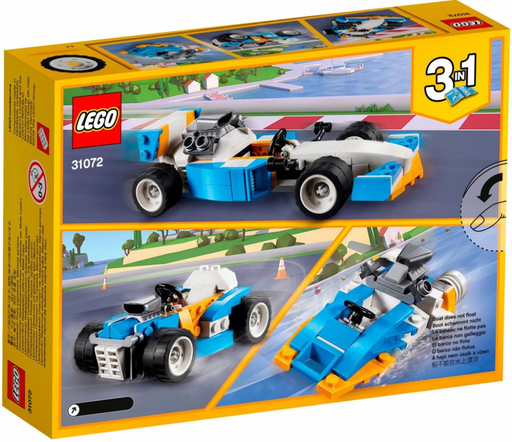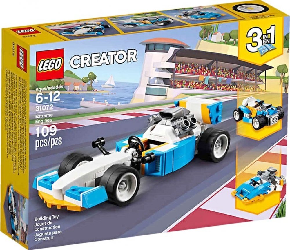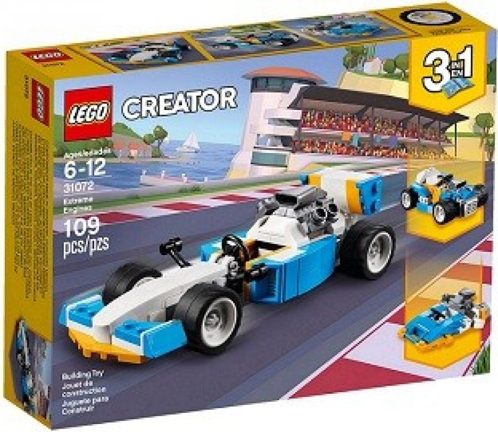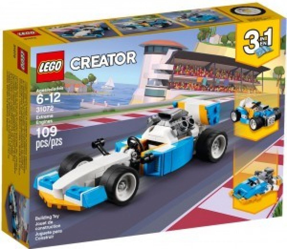 - Pokračuj v dobrodružství s tímto modelem 3 v 1. Pro další vysokorychlostní dobrodružství za volantem přestav závodní auto z Extrémních motorů na silný Hot Rod, nebo se vrhni na vlny v závodní akci na palubě aerodynamického motorového člunu.