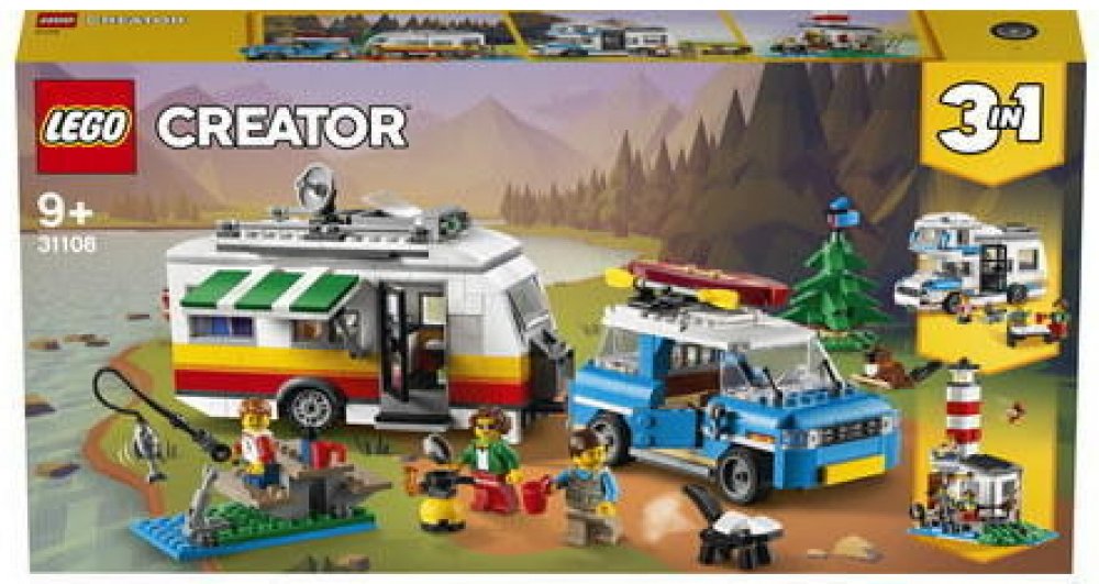 - Tato stavebnice LEGO® Creator 3 v 1 (31108) dětem přináší tři různé modely: rodinnou dovolenou v karavanu, obytnou dodávka a maják. Sada dále nabízí 3 minifigurky a 3 různá zvířátka z kostek pro ještě více herních možností.