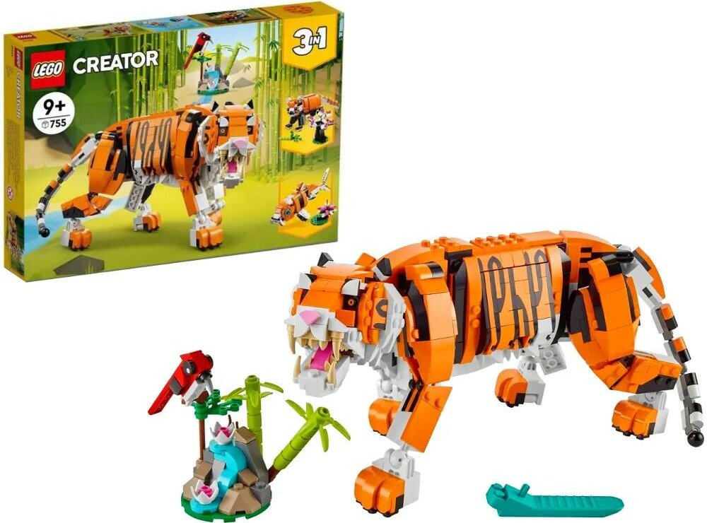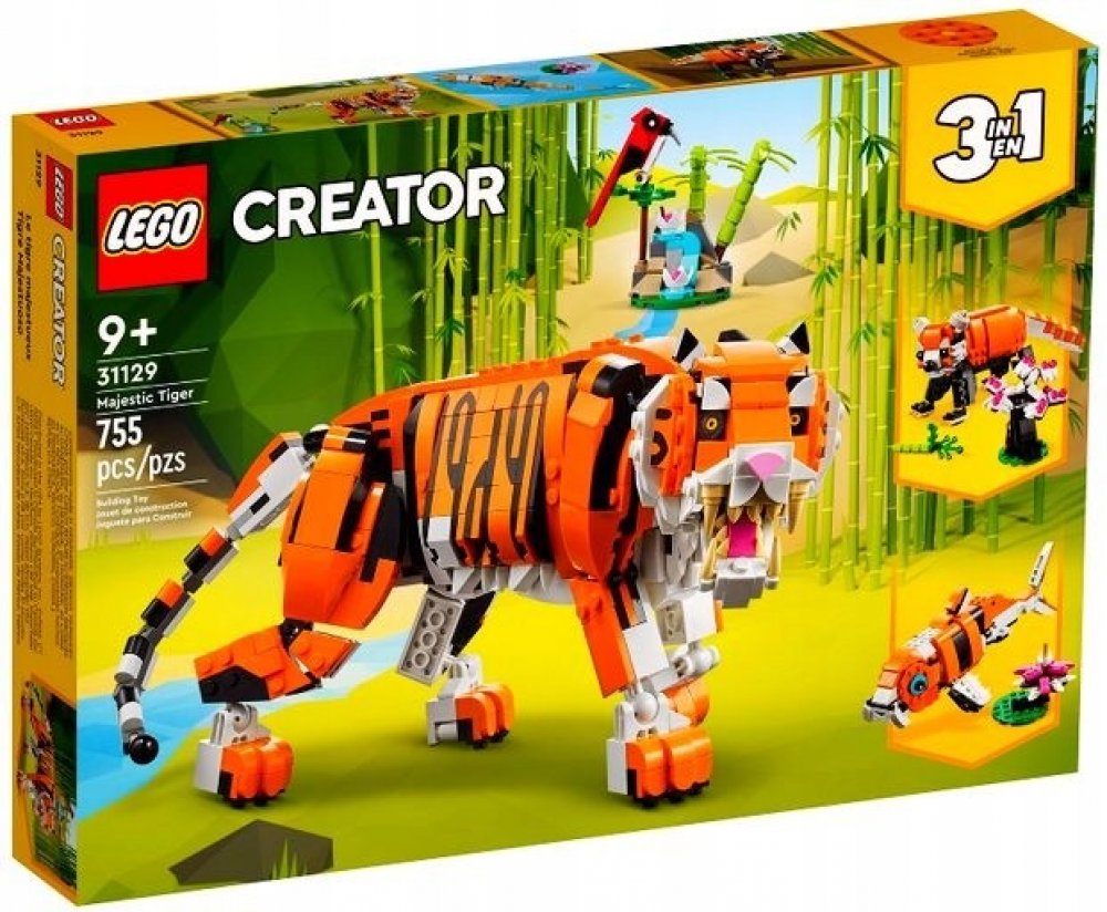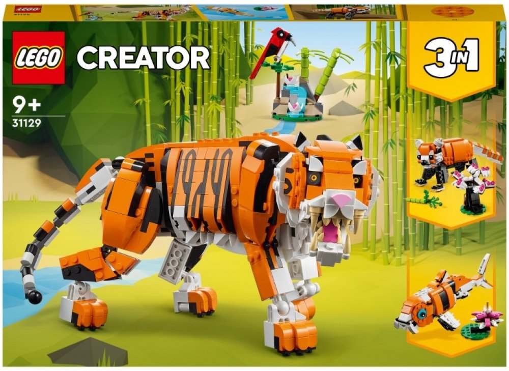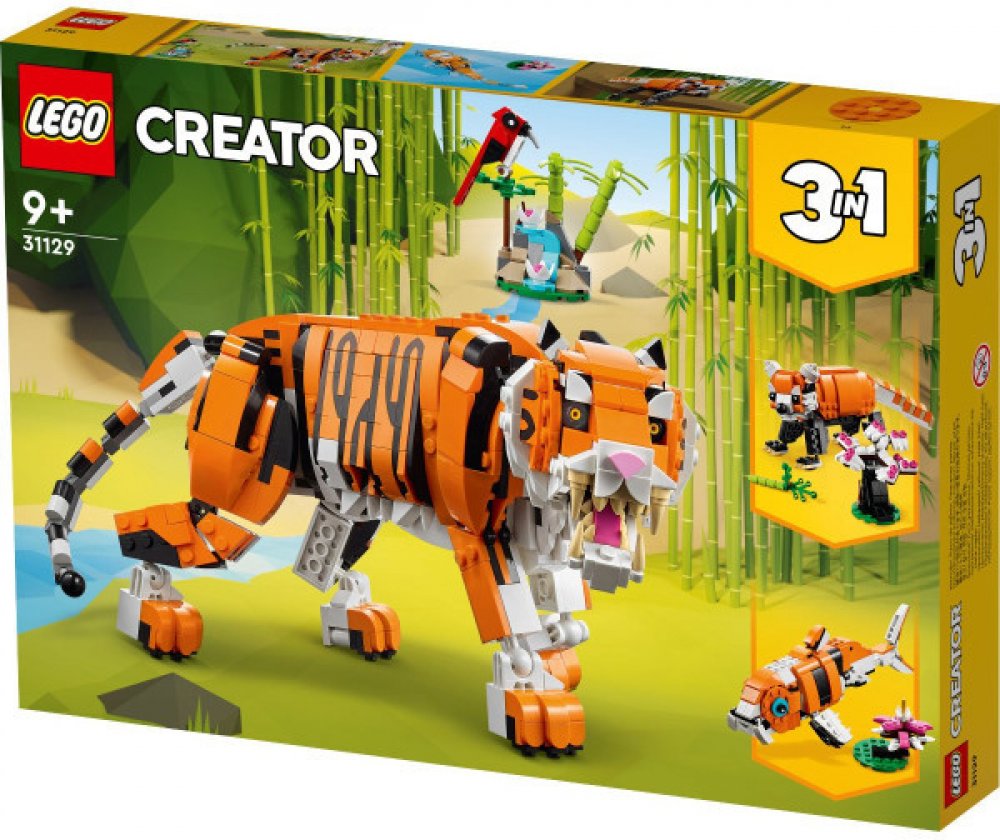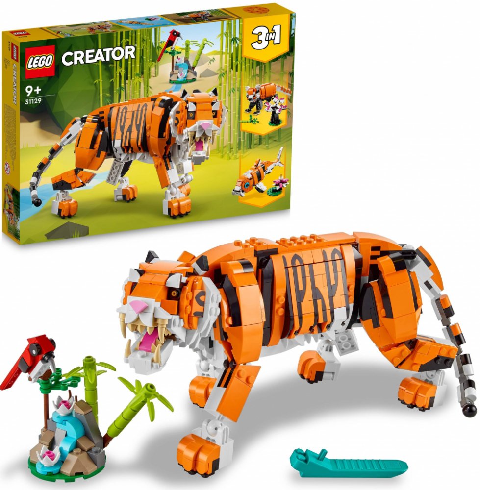 Dopřejte nadšeným milovníkům zvířat možnost prožívat zábavné příběhy se stavebnicí LEGO® Creator 3 v 1 Majestátní tygr (31129). Stavebnice přináší model tygra z kostek s polohovatelným ocasem, nohama, tělem, hlavou a tlamou. Tygr dokonce dokáže měnit výrazy ve tváři. 3 parádní zvířata v 1 úžasné stavebnici